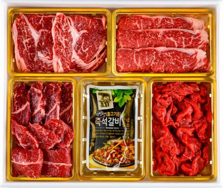5순위에서 소개한 스팸 선물 세트와 같이 남녀노소 받으면 싫어할 사람이 거의 없는 선물이 바로 소고기일 텐데요, 3위로 소개해드릴 제품은 쇠고기집의 1등급 명품 소고기 선물 세트 4종입니다.