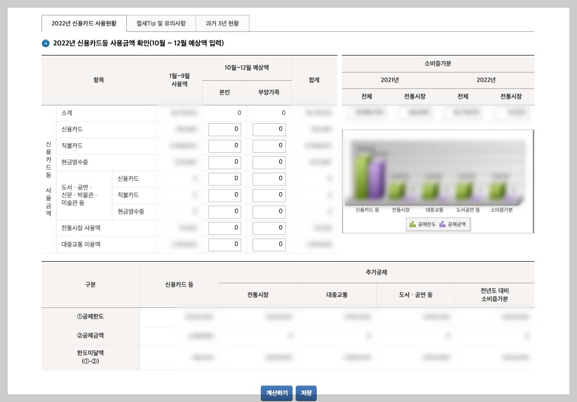 - 신용카드 소득공제액 계산하기 클릭