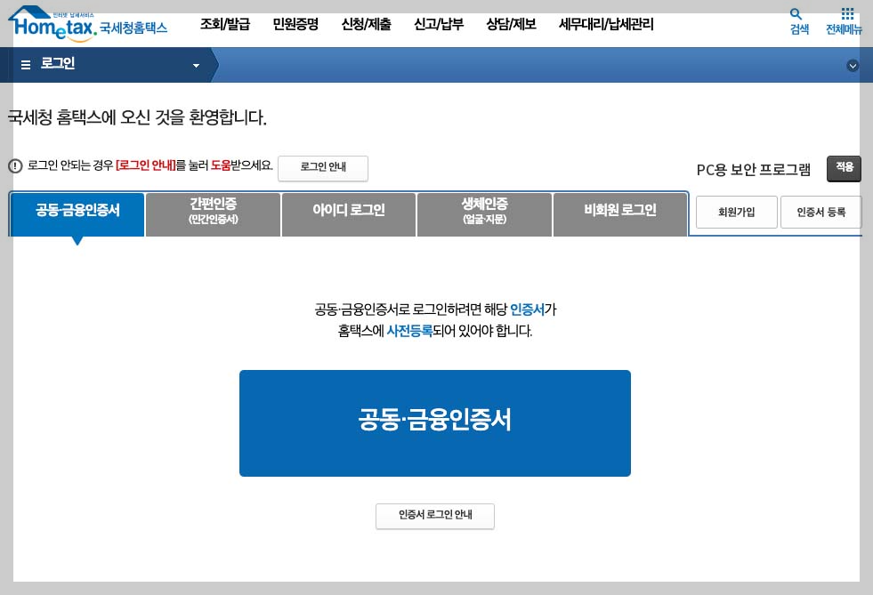 1. 홈텍스 로그인