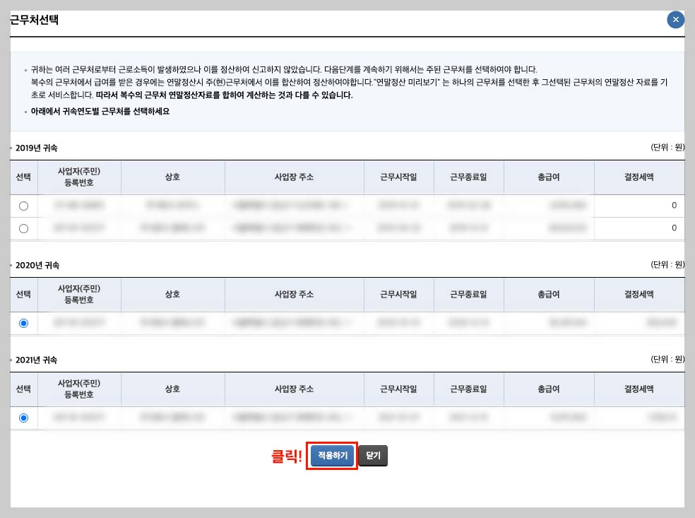3. 국세청에서 근로자 확인 절차가 마무리되면 회사에 간소화 자료 제공
