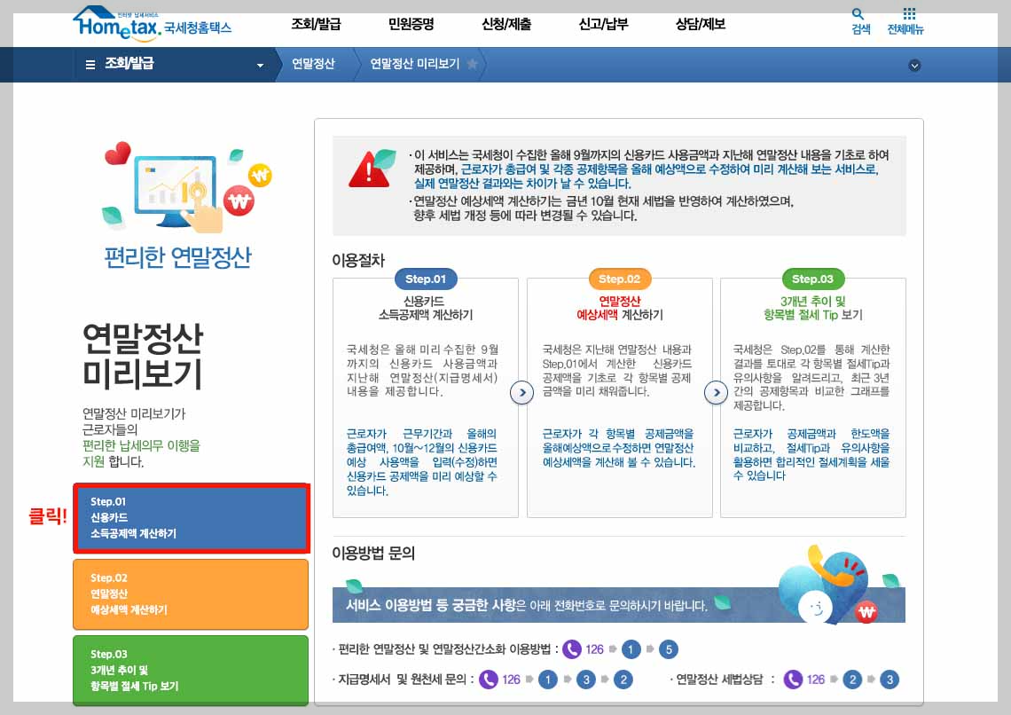 - 신용카드 소득공제액 계산하기 클릭
