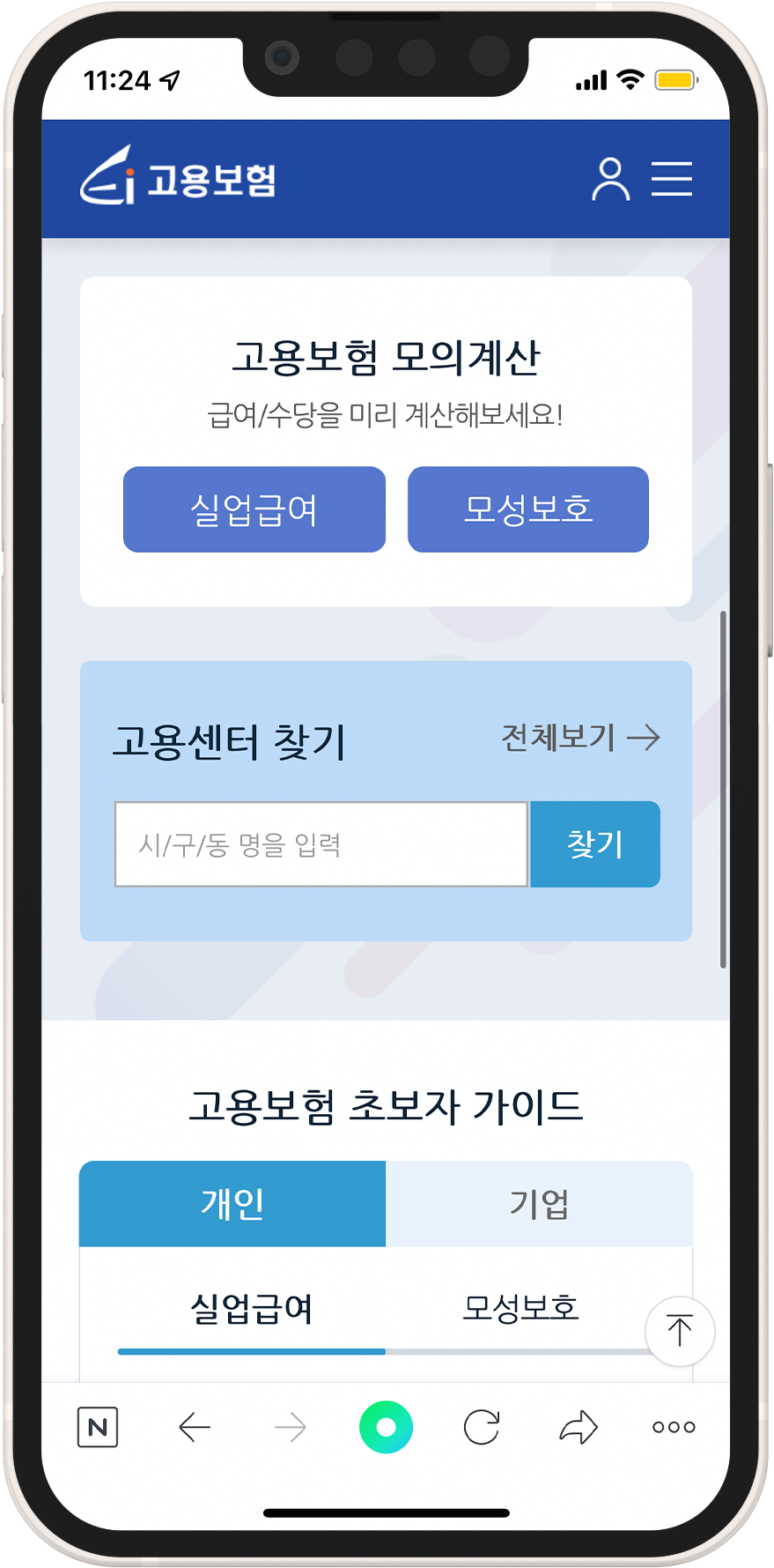 일단 국가 고용 사이트에 접속한 뒤 회원가입을 진행해주면 되는데요, 가입이 완료되었다면 메인 화면의 실업급여 모의계산 버튼을 눌러서 계산을 할 수 있는 화면으로 넘어가 주세요.