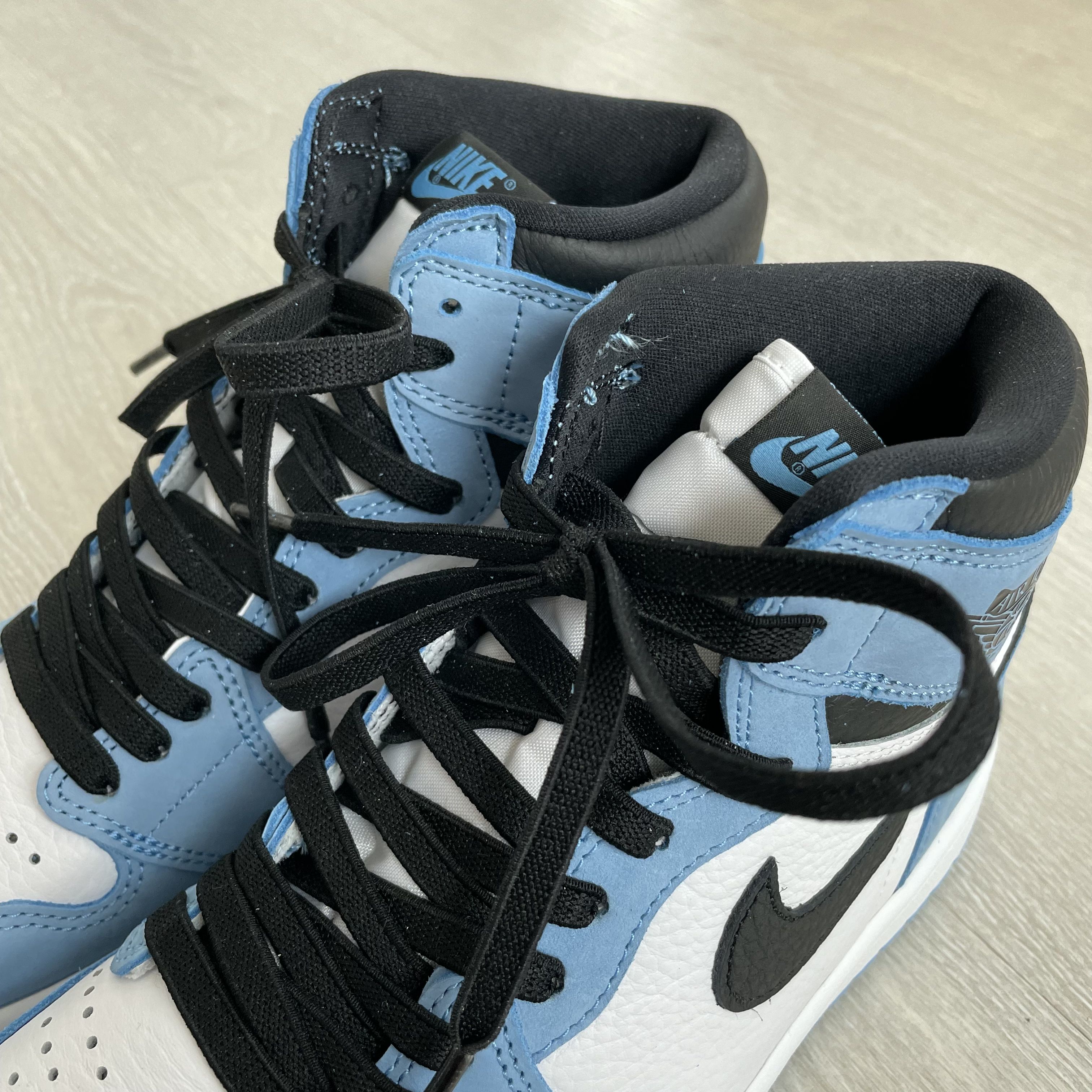 상자를 열면 여분 신발끈과 함께 조던1 유니버시티 블루의 모습을 확인할 수 있어요. 유니버시티 블루답게 여분 신발끈 역시 동일한 컬러로 패키징 되어 있었어요.