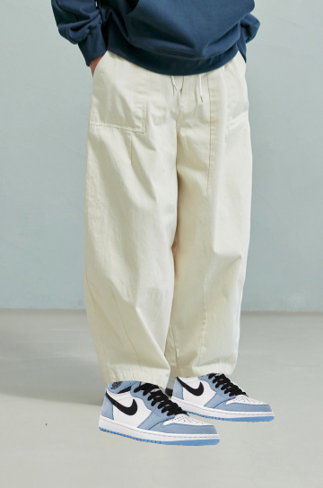 개인적으로 코디를 연출할 때 블루와 아이보리 혹은 옅은 베이지의 조합을 선호하는데요, 프리즘웍스에서 나온 벌룬 팬츠의 핏과 아이보리의 컬러감이 나이키 조던1 유니버시티 블루와 너무 잘 어울릴 것 같았습니다.