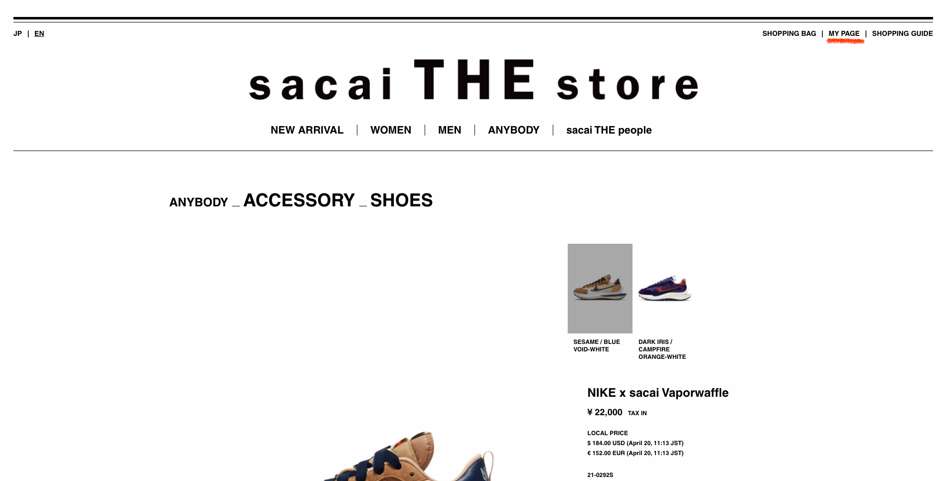 나이키 x 사카이 베이퍼와플 Sesame과 Dark Iris 두 컬러의 발매가 약 일주일 앞으로 다가왔는데요, 정확하게는 한국 시간으로 4월 27일 오전 10시 나이키와 사카이에서 동시 발매하게 됩니다.