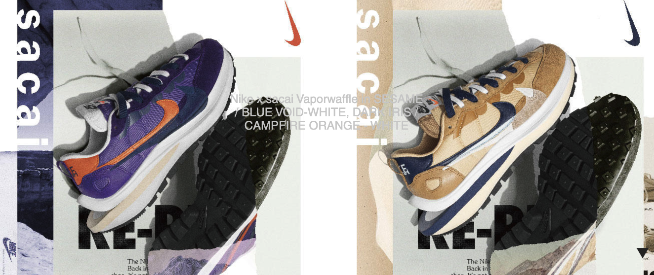 나이키 x 사카이 베이퍼와플 Sesame과 Dark Iris 두 컬러의 발매가 약 일주일 앞으로 다가왔는데요, 정확하게는 한국 시간으로 4월 27일 오전 10시 나이키와 사카이에서 동시 발매하게 됩니다.