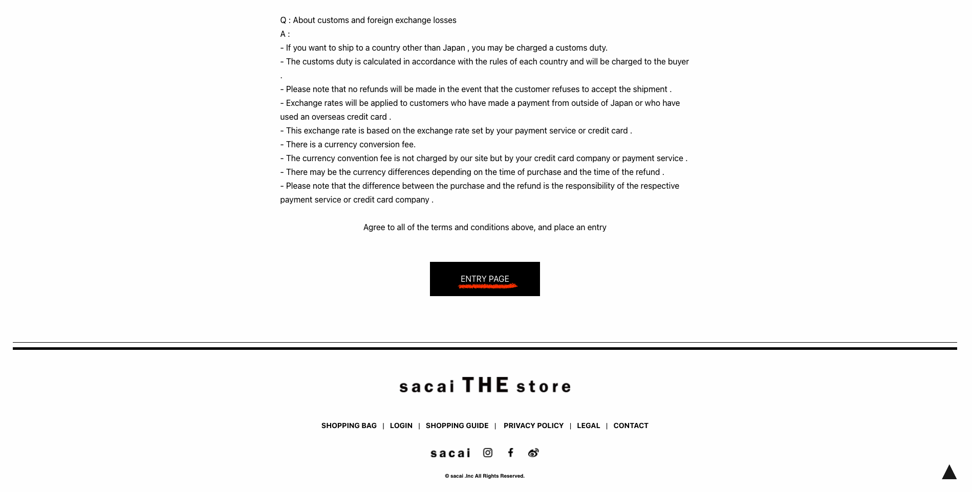 이제 나이키 x 사카이 베이퍼와플 응모에 대한 설명이 적힌 페이지가 나오게 되는데요, 제일 하단의 'ENTRY PAGE'를 클릭하면 응모 페이지로 들어가게 됩니다.