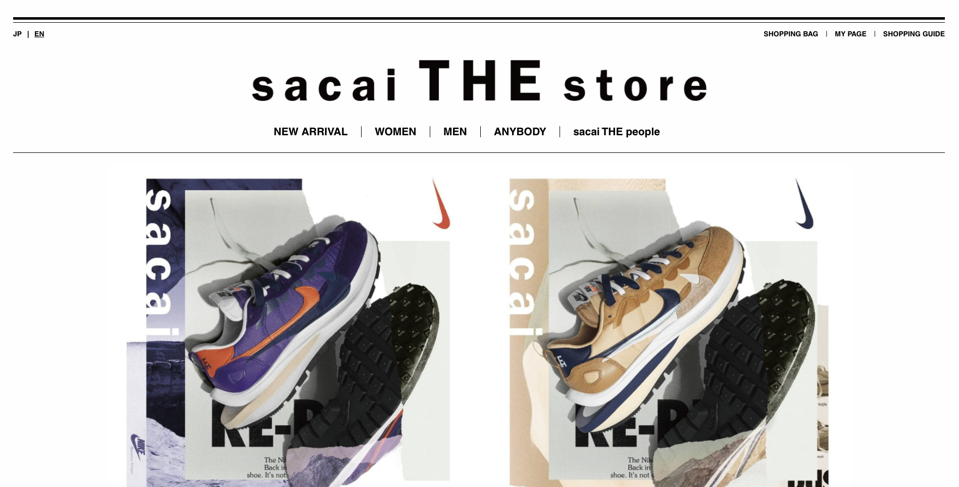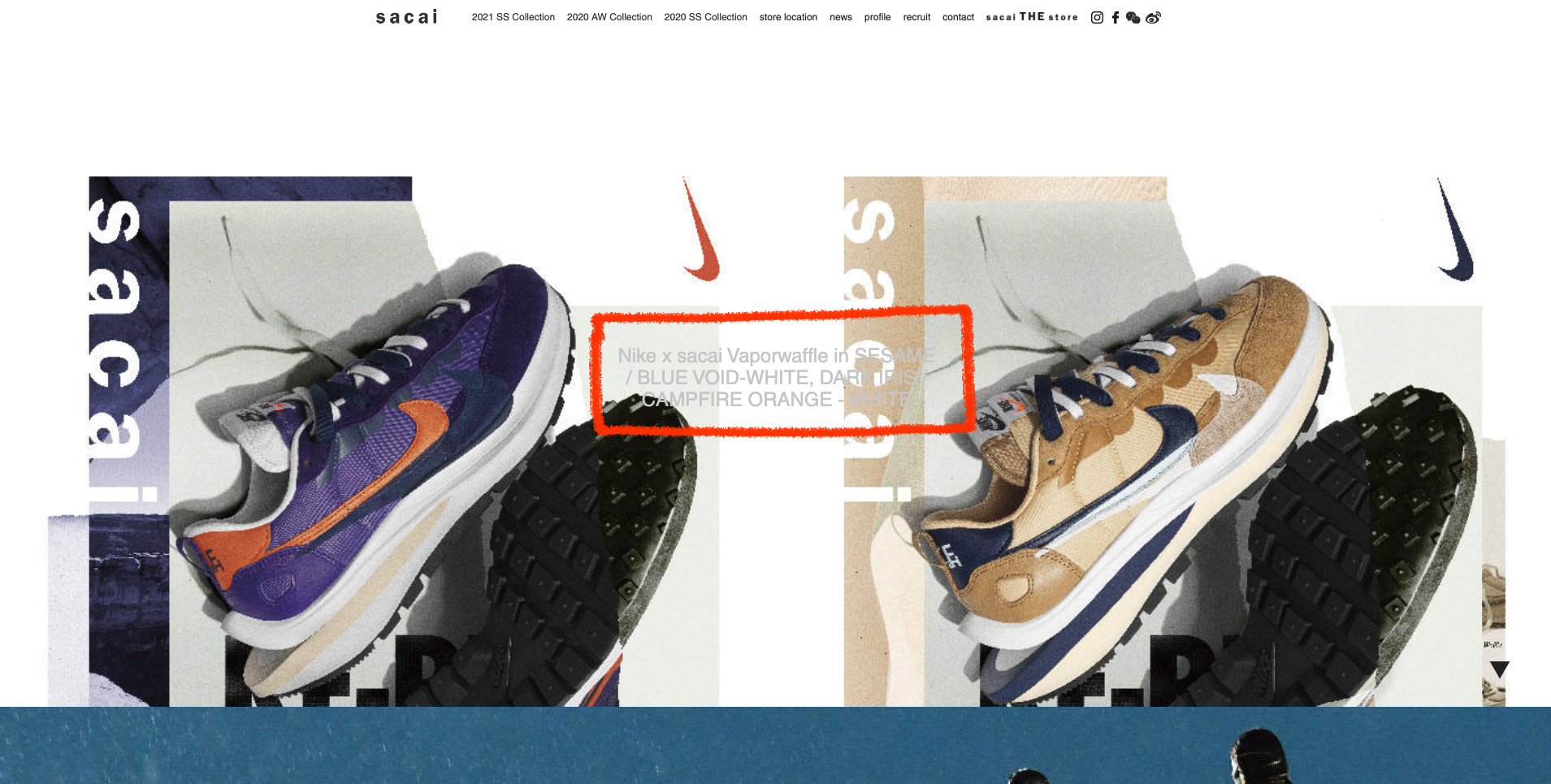 사카이 일본 공식 홈페이지에 접속한 후 나이키 x 사카이 베이퍼와플 배너 이미지를 클릭해주세요.