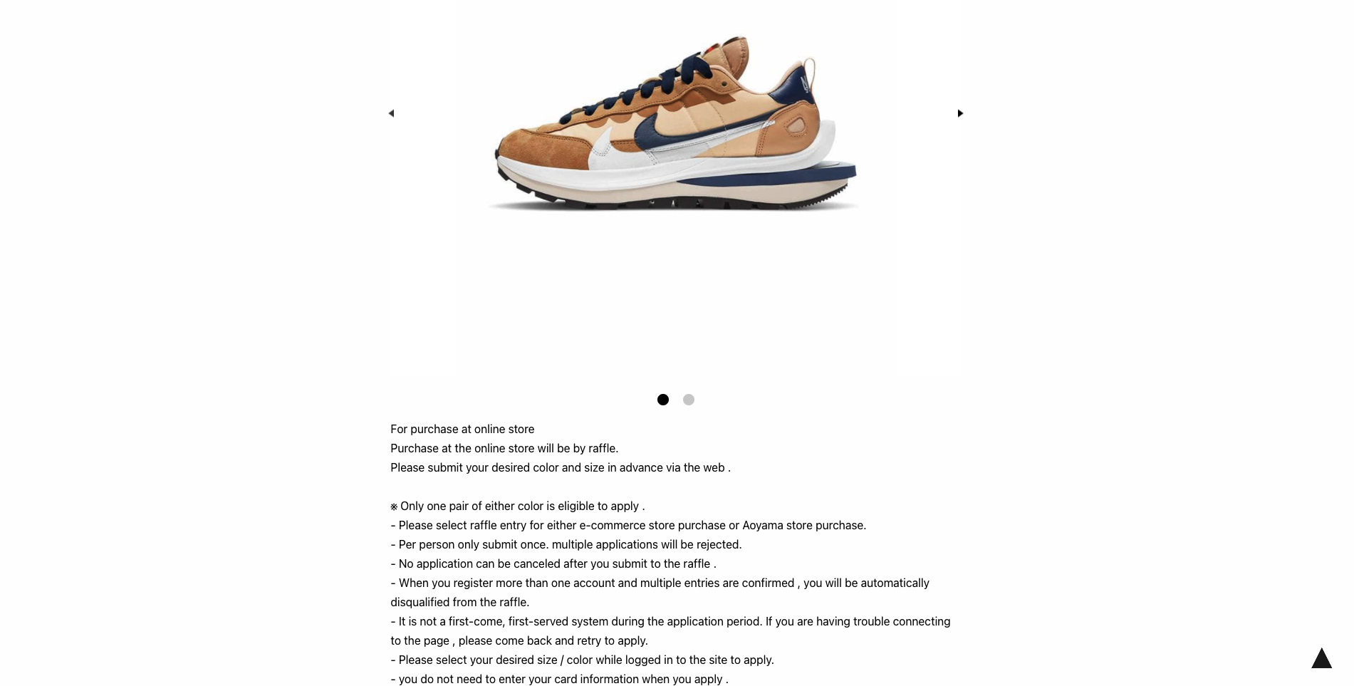 발매 당일 드로우를 진행하는 나이키와는 달리 사카이는 약 일주일 전에 응모를 시작했는데요, 자세한 일정은 아래와 같습니다.