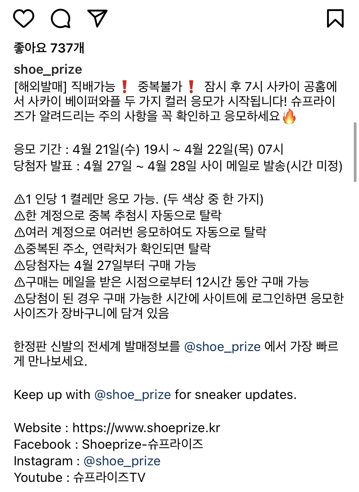 응모 기간 : 4월 21일 (수) 오후 7시 ~ 4월 22일 (목) 오전 7시