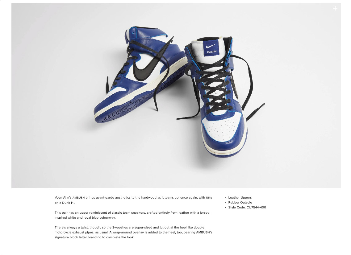 오늘은 발매가 약 일주일 앞으로 다가온 나이키 X 앰부쉬 덩크 하이 딥 로얄 블루 제품을 영국 편집샵 엔드 클로딩에서 응모하는 방법을 알려드리려고 합니다. 엔드 클로딩은 영국을 대표하는 스트릿 편집샵으로 국내 스니커즈 매니아들에게도 아주 유명한데요, 이 편집샵에서는 한정판 스니커즈가 정식 발매할 때까지 약 일주일간 응모를 진행하고 있습니다.
