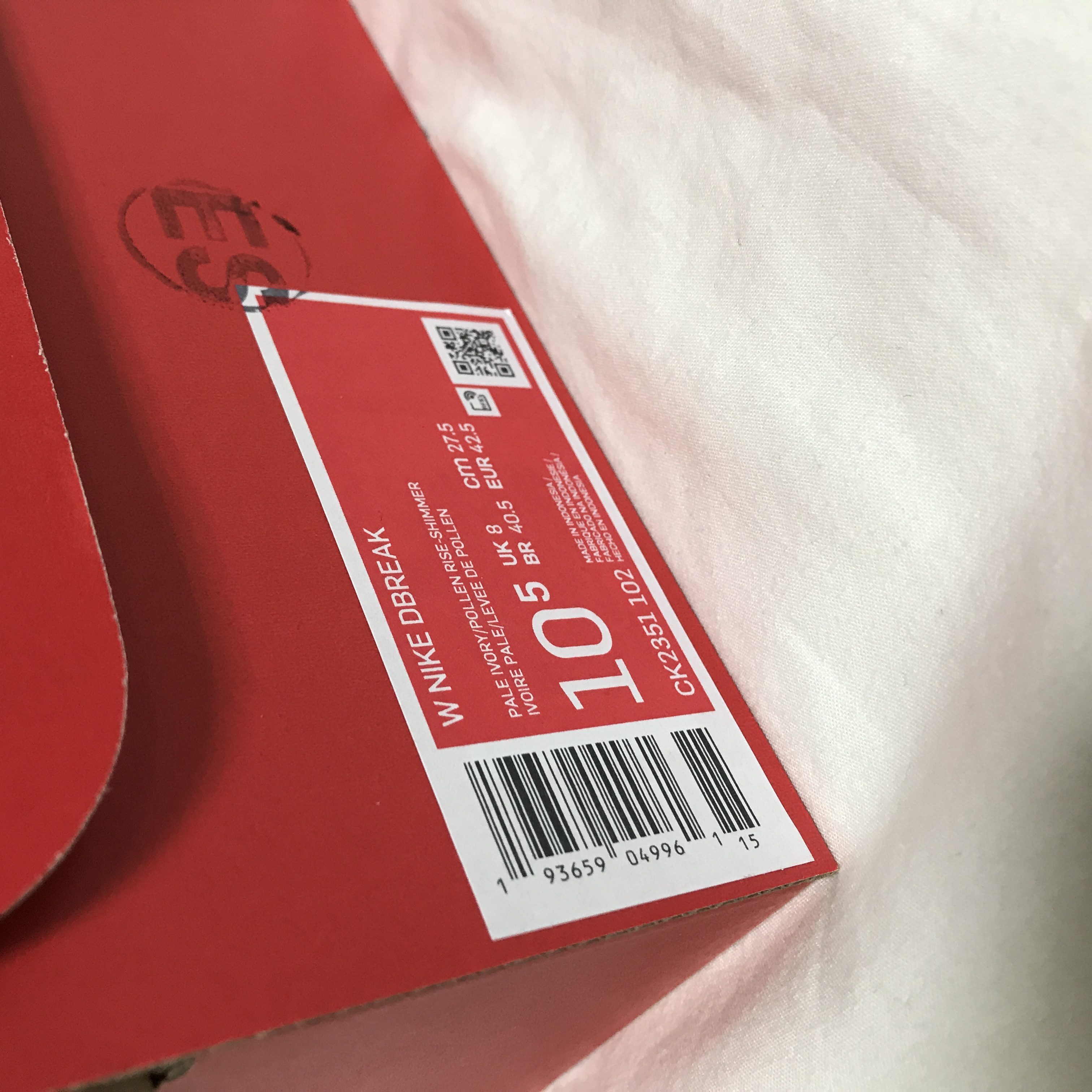 상자를 열면 이렇게 나이키 데이브레이크 페일 아이보리 제품이 들어 있습니다!