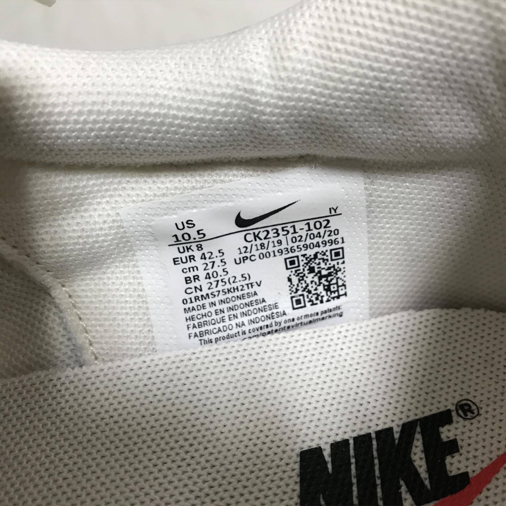 내부 티테일을 보면 여기는 나이키의 스우시 컬러가 레드로 되어 있네요. 그리고 사이즈와 원산지, 제품 코드가 적혀있는 택이 측면에 부착되어 있습니다.
