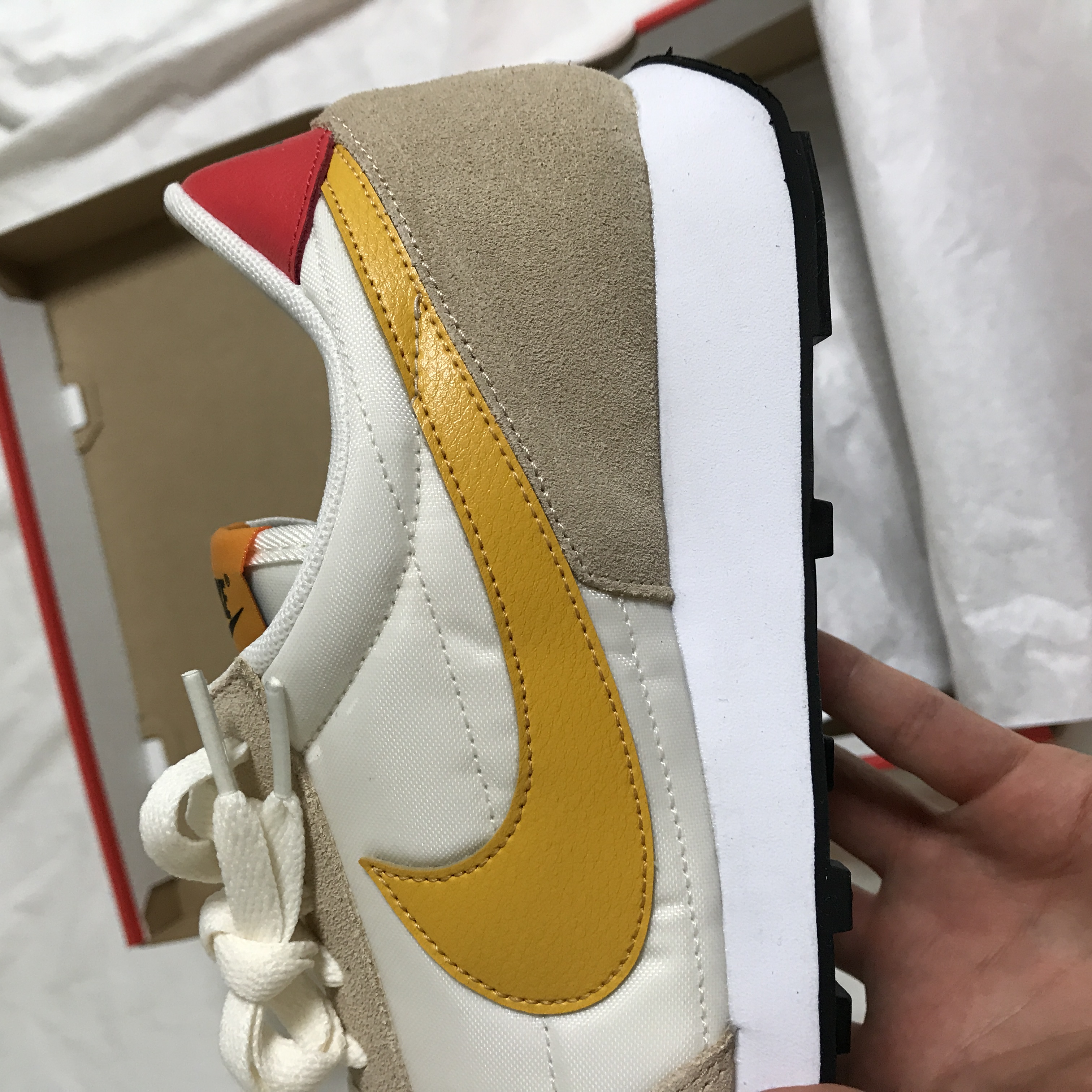 상자를 열면 이렇게 나이키 데이브레이크 페일 아이보리 제품이 들어 있습니다!