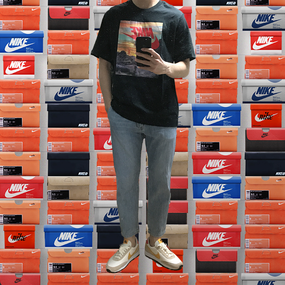 저는 데이브레이크와 함께 구매한 나이키 티셔츠와 함께 코디네이트를 해봤는데요, 티셔츠의 프린팅 색감과 데이브레이크의 컬러가 은근히 잘 어울렸습니다.