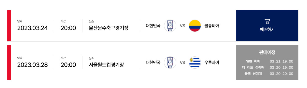 ❏ 대한민국 vs 우루과이 평가전 티켓 예매