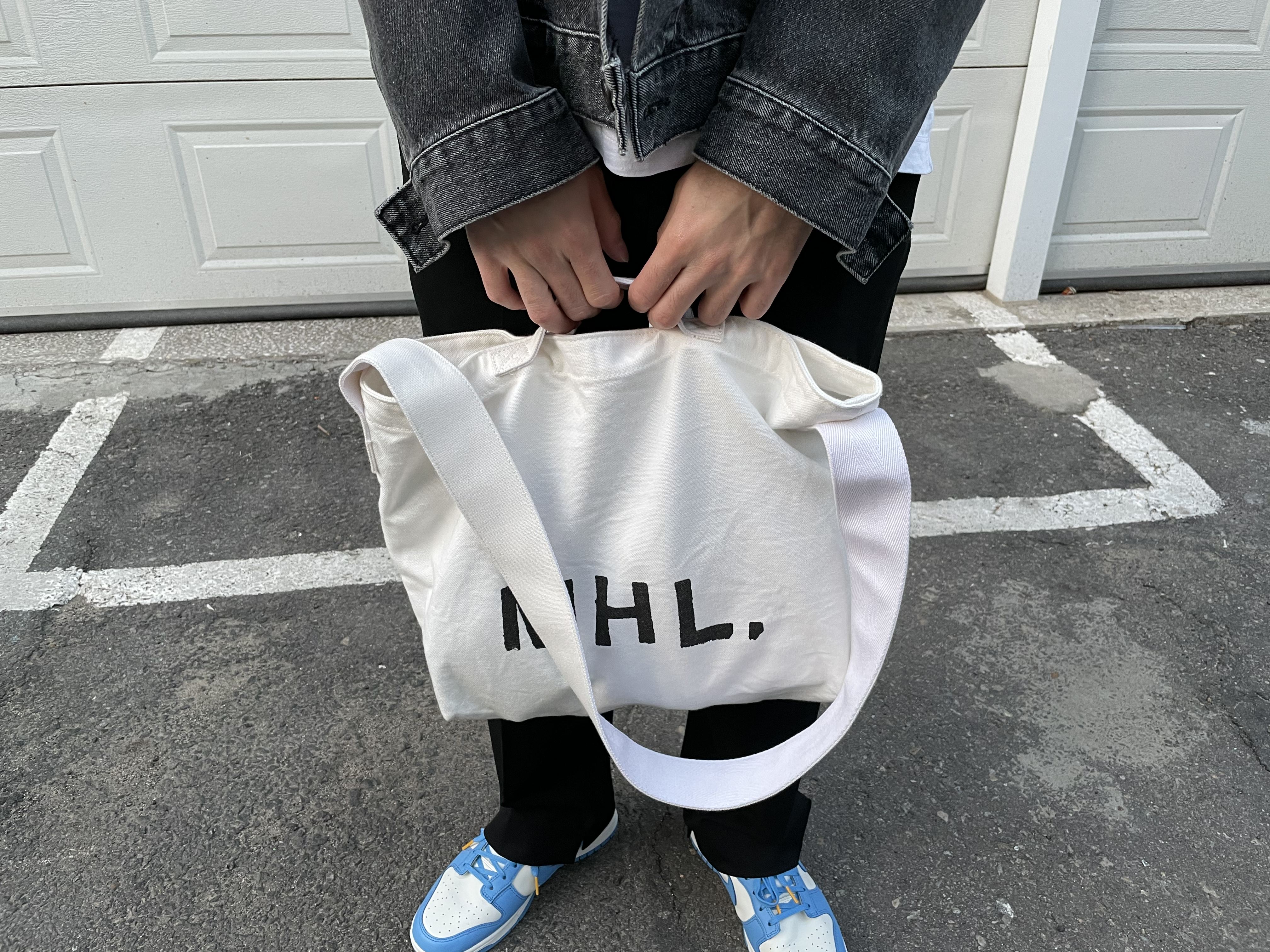 그리고 마가렛호웰 (MHL.)의 투웨이 에코백인데요, 요즘 많은 분들이 착용하고 계시죠. 미니멀리즘한 로고 디자인과 견고한 코튼 소재 때문에 활용도가 상당히 만족스러운 가방인 것 같아요.