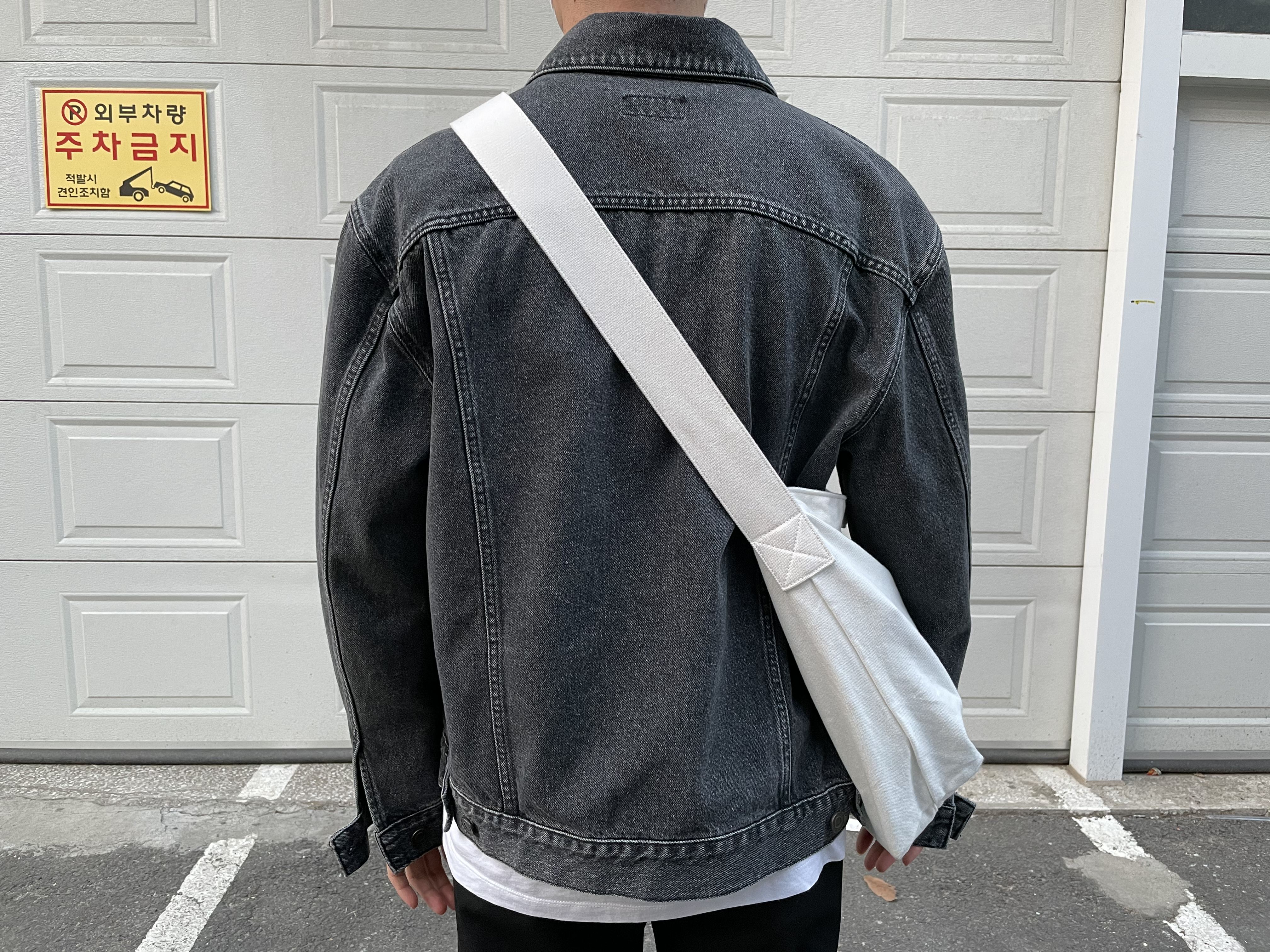 먼저 아우터는 제가 요즘 가장 자주 입는 브랜디드의 데님 워커 자켓인데요, 무난한 블랙 컬러이지만 워싱된 소재로 좀 더 유니크한 맛을 느낄 수가 있어요. 두께도 꽤 있는 편이라 요즘 같은 초봄에 입기 딱 좋은 것 같아요!