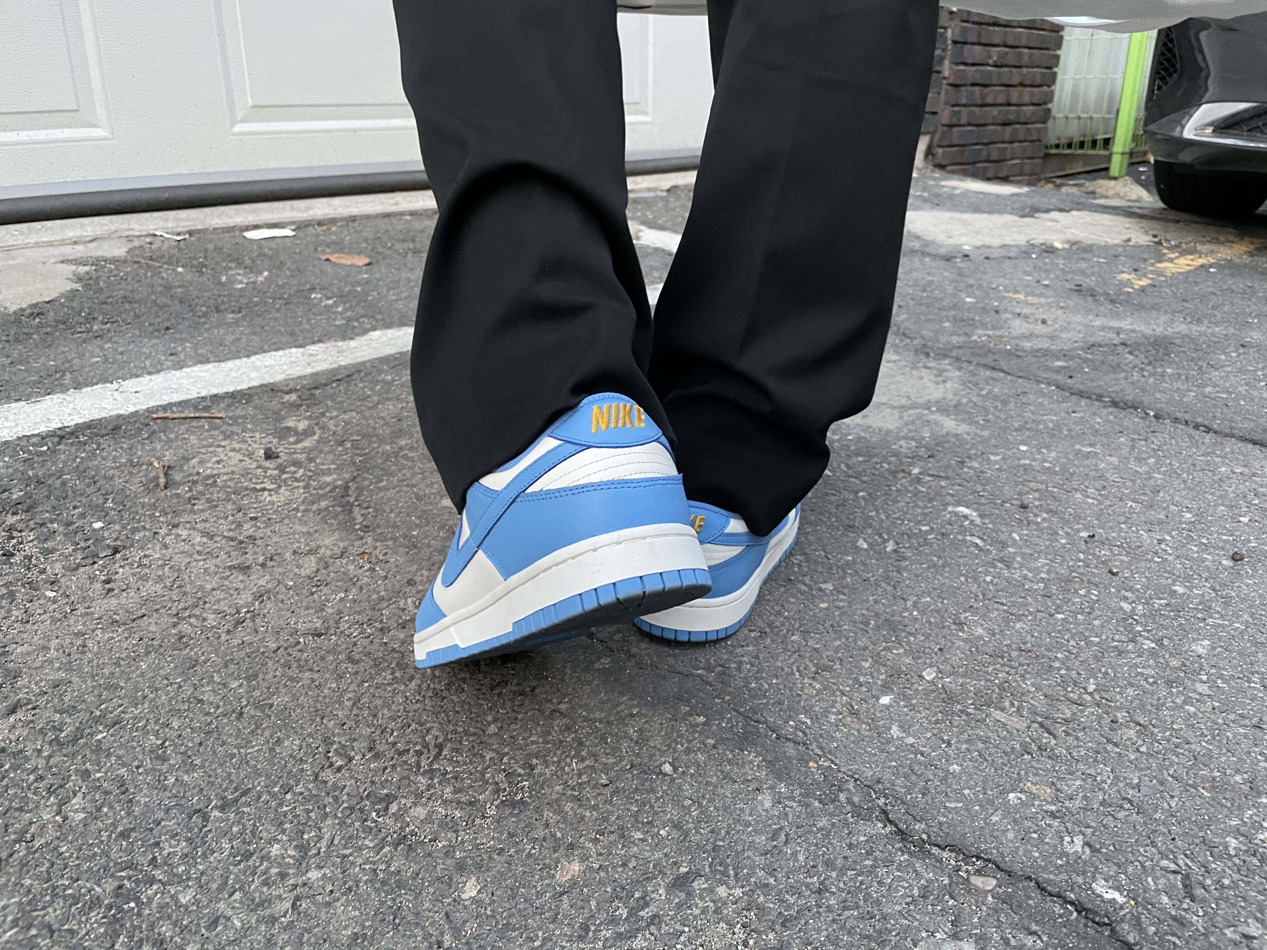 뒤꿈치의 나이키 로고도 골드 컬러로 포인트를 줬네요. 저는 사이즈 275에 당첨되었는데요, 평소 270과 275를 왔다 갔다 하는 제 발에는 275 사이즈의 덩크가 딱 적당한 착용감이었어요.