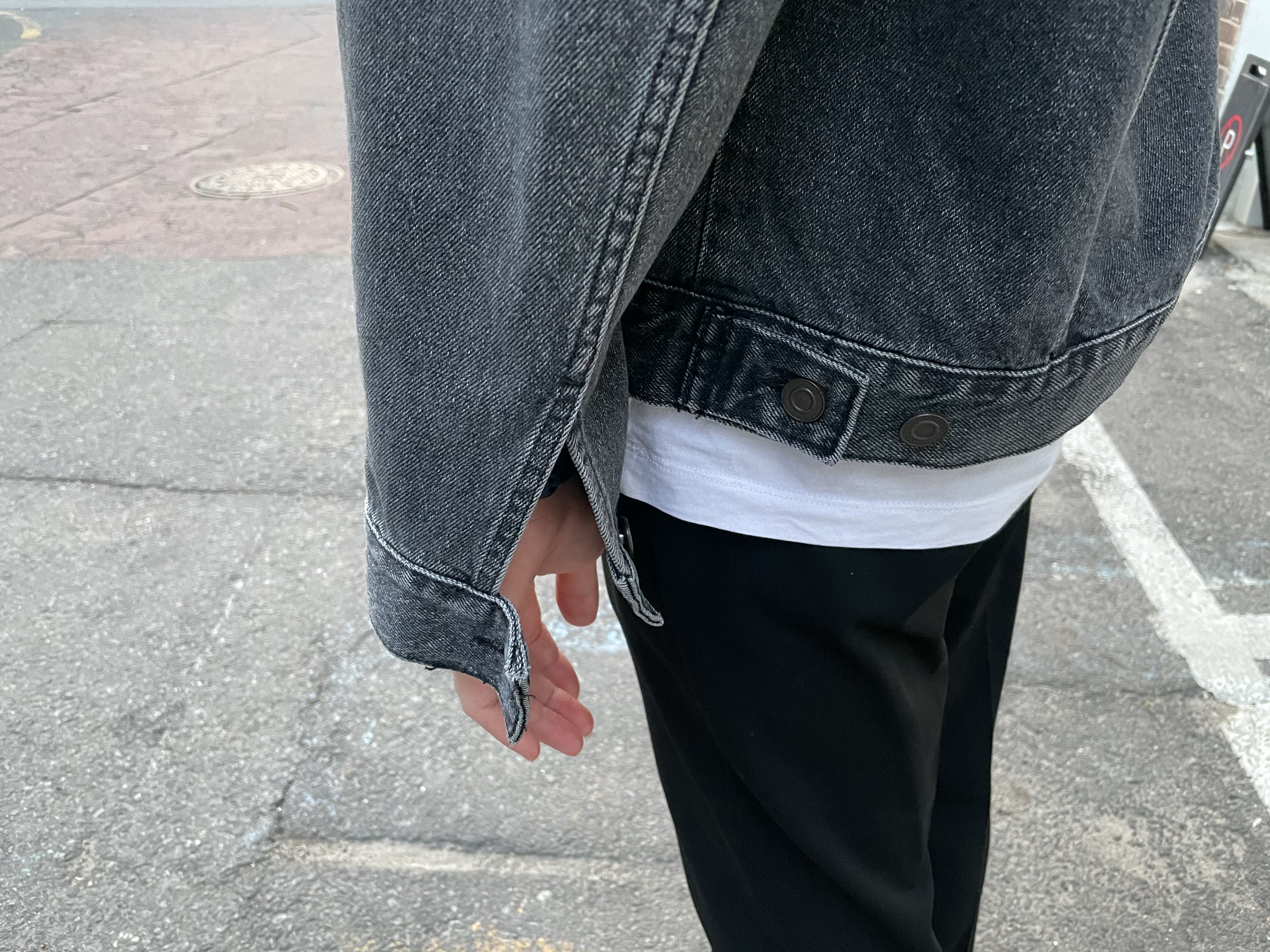 먼저 아우터는 제가 요즘 가장 자주 입는 브랜디드의 데님 워커 자켓인데요, 무난한 블랙 컬러이지만 워싱된 소재로 좀 더 유니크한 맛을 느낄 수가 있어요. 두께도 꽤 있는 편이라 요즘 같은 초봄에 입기 딱 좋은 것 같아요!