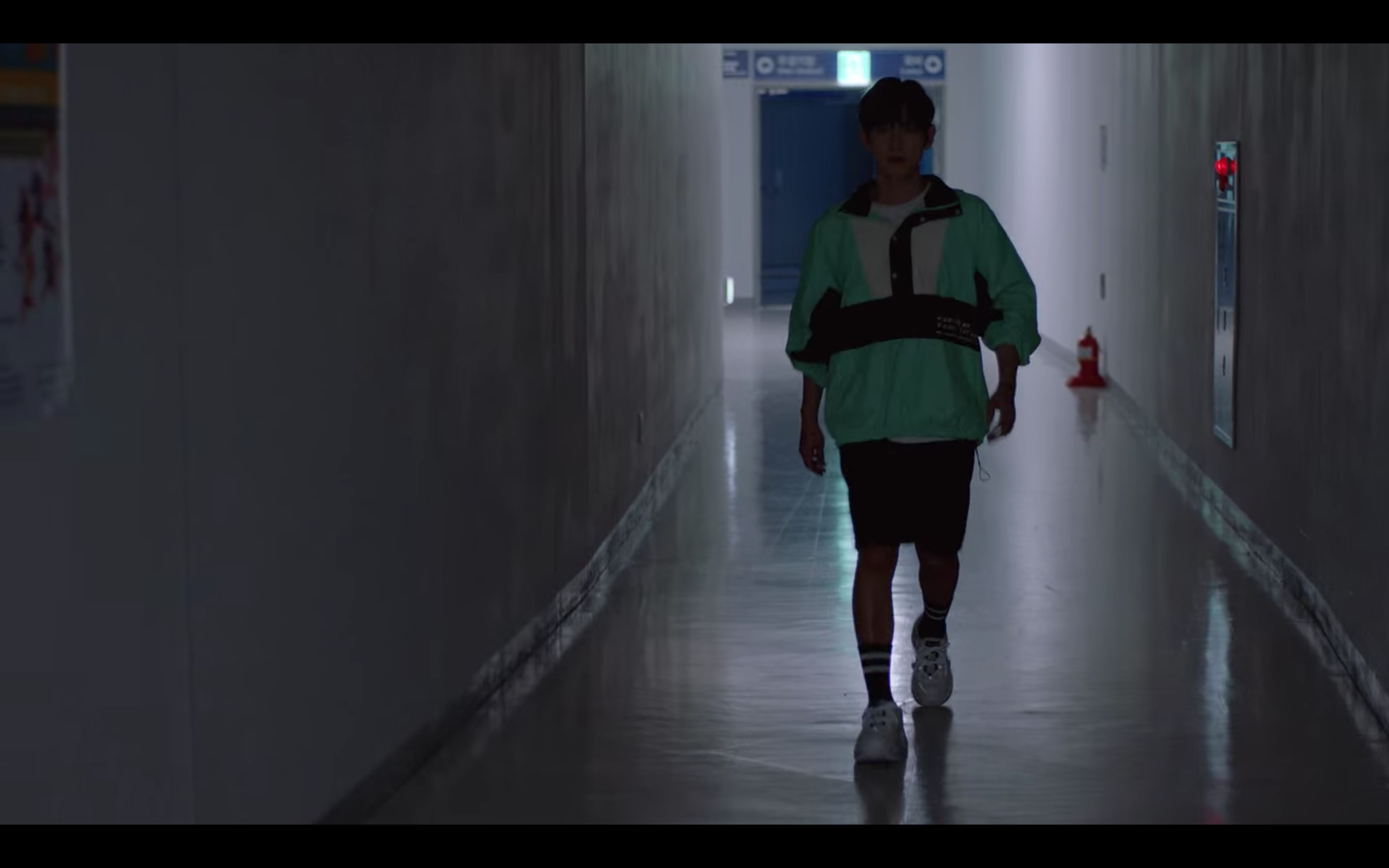 해당 장면은 육상계 간판스타인 기선겸이 코치에게 폭행당한 후배를 찾아가는 씬인데요, 민트 컬러의 아노락 자켓과 편안한 핏의 반바지에 앤더슨벨 유니섹스 러너 스니커즈로 운동선수의 캐릭터를 아주 잘 살려주었어요.