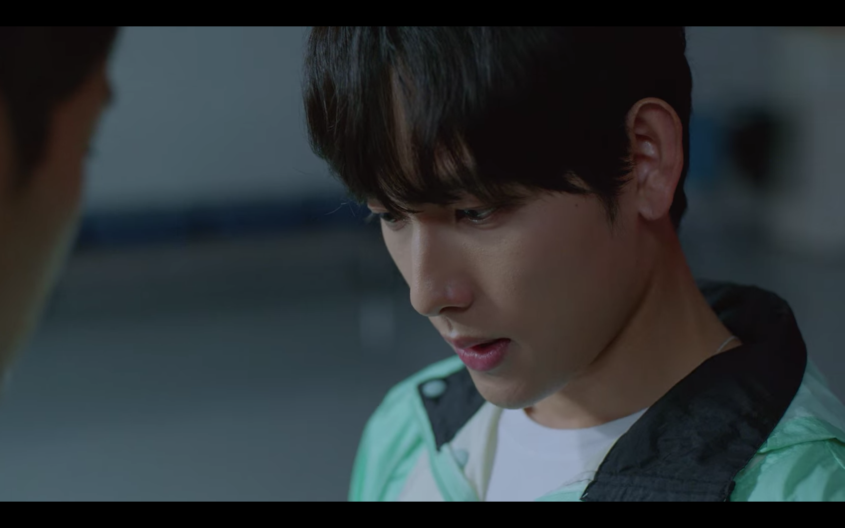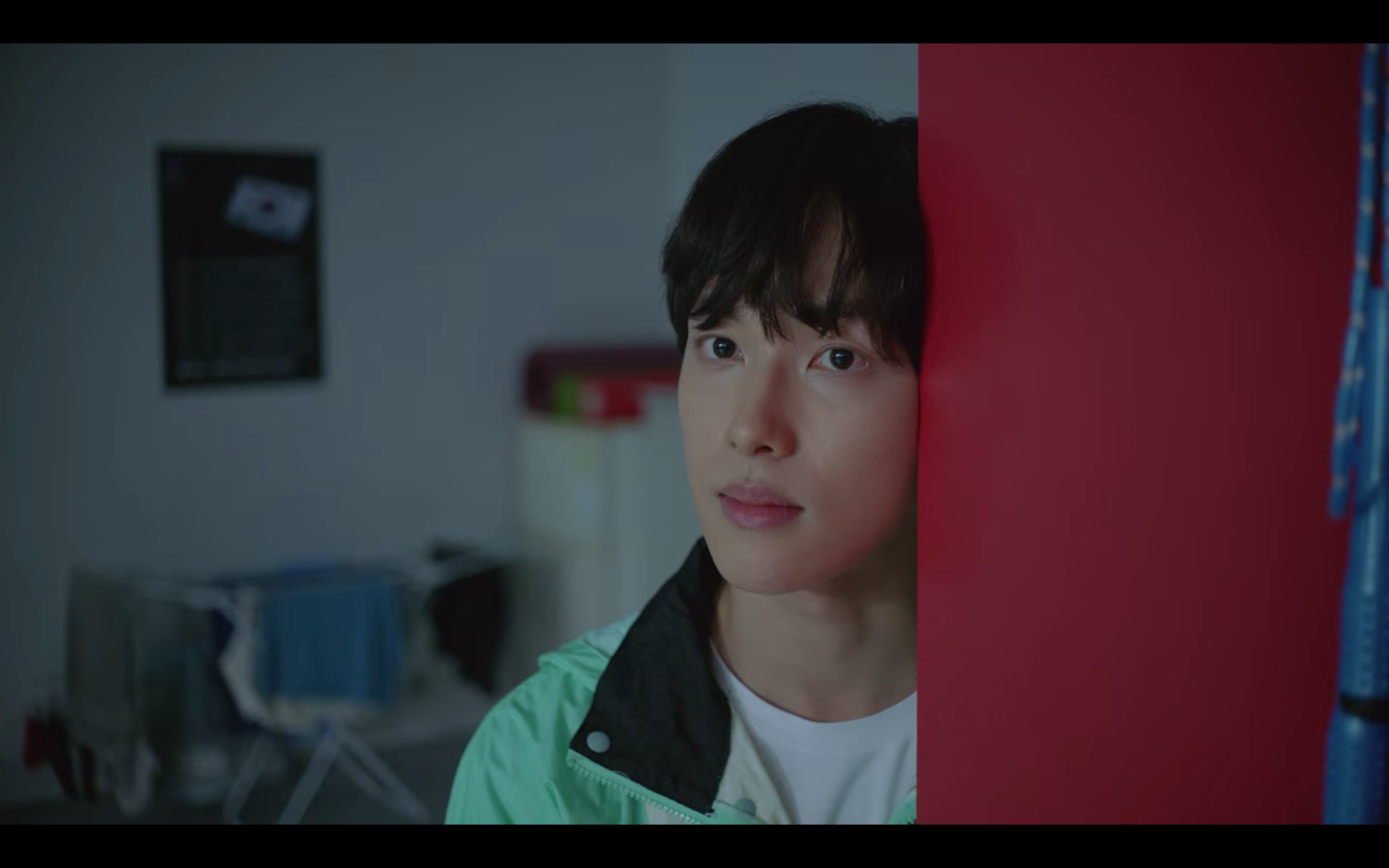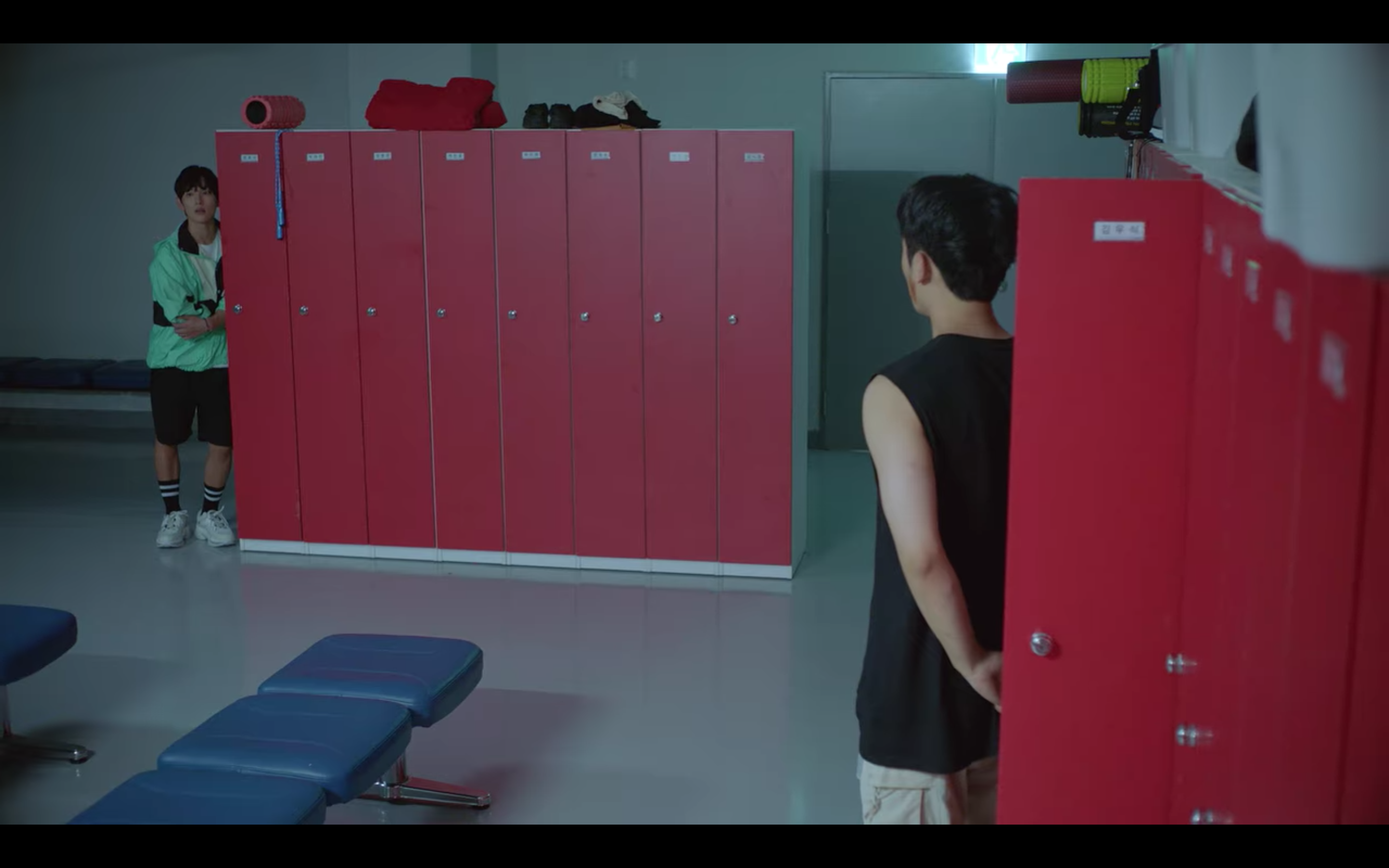 해당 장면은 육상계 간판스타인 기선겸이 코치에게 폭행당한 후배를 찾아가는 씬인데요, 민트 컬러의 아노락 자켓과 편안한 핏의 반바지에 앤더슨벨 유니섹스 러너 스니커즈로 운동선수의 캐릭터를 아주 잘 살려주었어요.