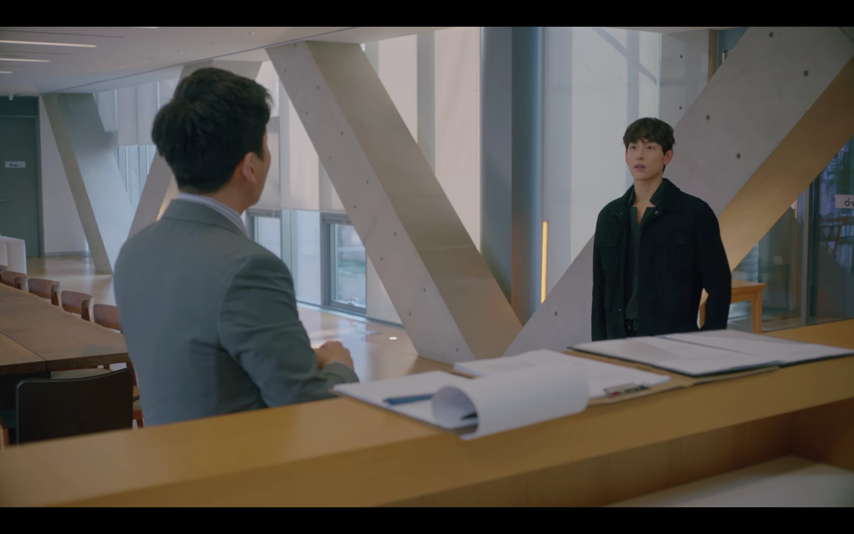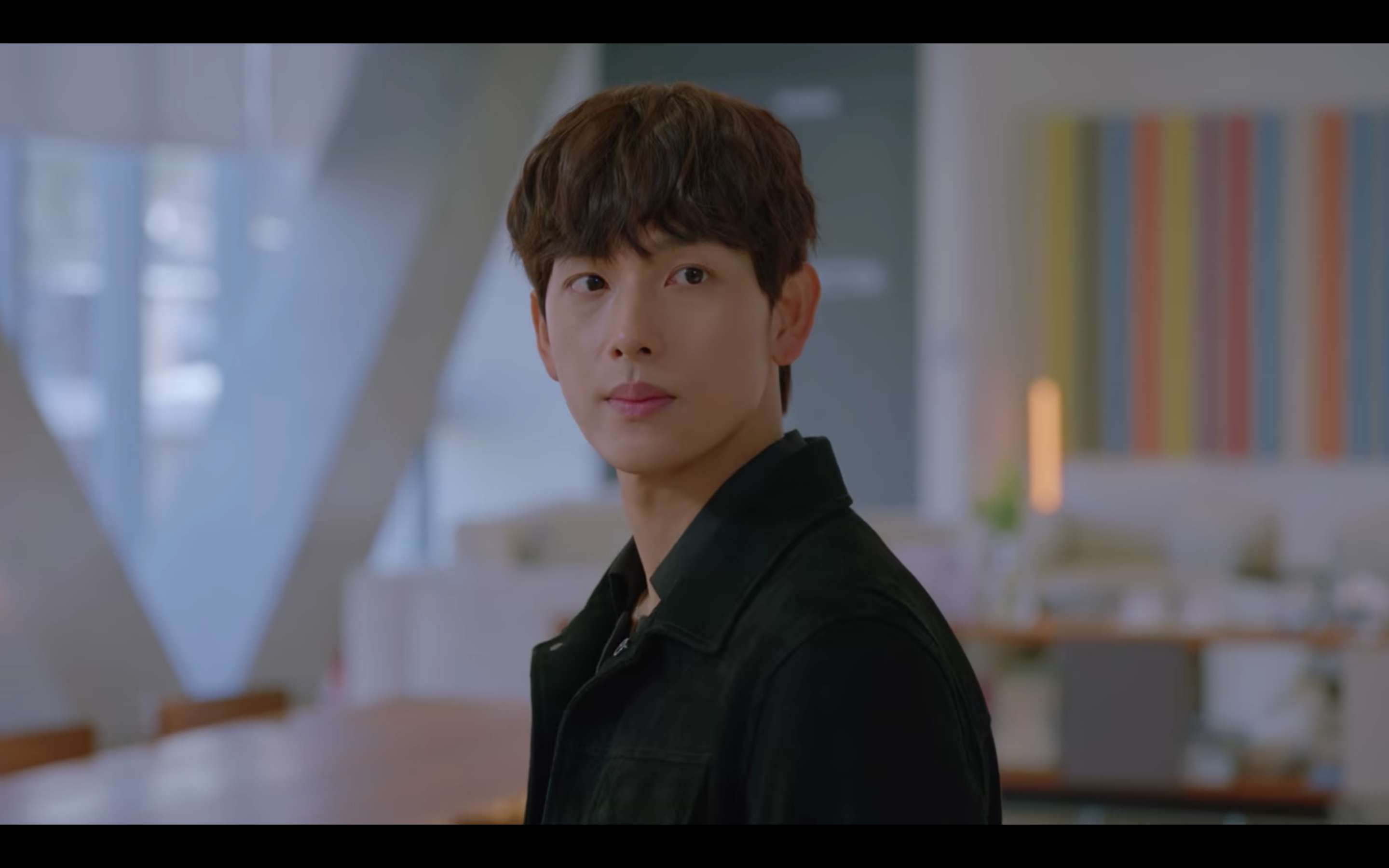 해당 제품을 착용한 배우 임시완 님의 스타일 역시 무난하게 연출되었는데요, 이너로 어두운 색상의 오픈 카라 셔츠를 입은 듯해요. 그리고 가까이서 봤을 때 스웨이드 소재라는 걸 알 수 있었는데요, 요즘처럼 겨울 치고는 따뜻한 날이 종종 있을 때 가볍게 걸치기 좋은 제품인 것 같아요.
