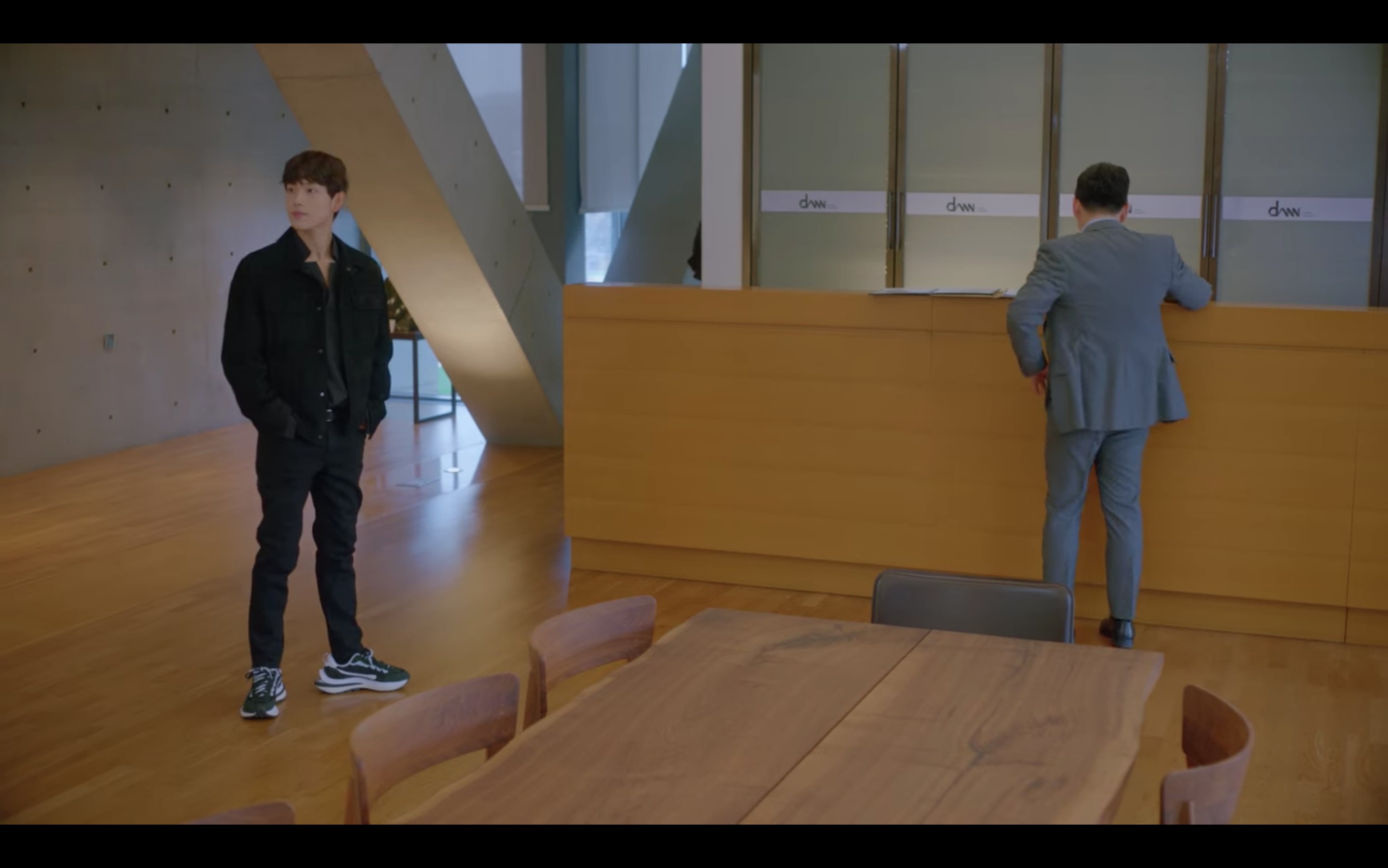 다시 <런온>으로 돌아가서 나이키 x 사카이 베이퍼 와플 블랙 색상의 제품을 착용하고 있는 배우 임시완 님의 모습을 볼 수 있는데요, 느와르라르메스 스웨이드 트러커 자켓와 블랙 컬러의 스탠다드핏 슬랙스와 함께 연출을 하셨어요. 상당히 캐주얼하면서 육상 선수 역할답게 나이키 x 사카이 베이퍼 와플 제품으로 스포티함까지 챙긴 센스 있는 스타일이었어요.