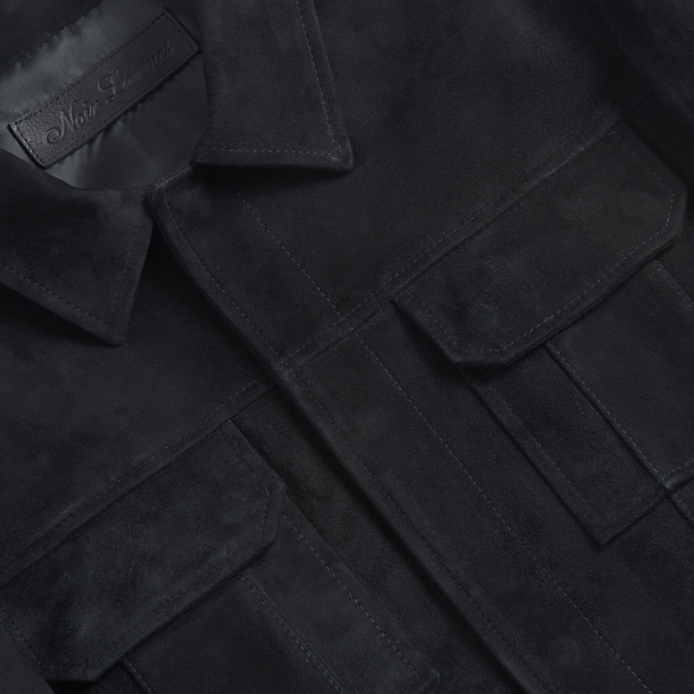 느와르라르메스 스탠다드 스웨이드 트러커 자켓은 최상급 스웨이드 가죽을 가공하는 로얄 테너리의 탑 그레이드 실키 고트 스웨이드를 사용했다고 하는데요, 두께감 있는 가죽으로 탄탄하고 오랫동안 멋스러운 스타일을 연출할 수 있는 제품인 것 같습니다. 다만 천연 스웨이드 가죽 특성상 3, 4회 착용 시까지 가루가 조금씩 떨어질 수 있다고 하네요.