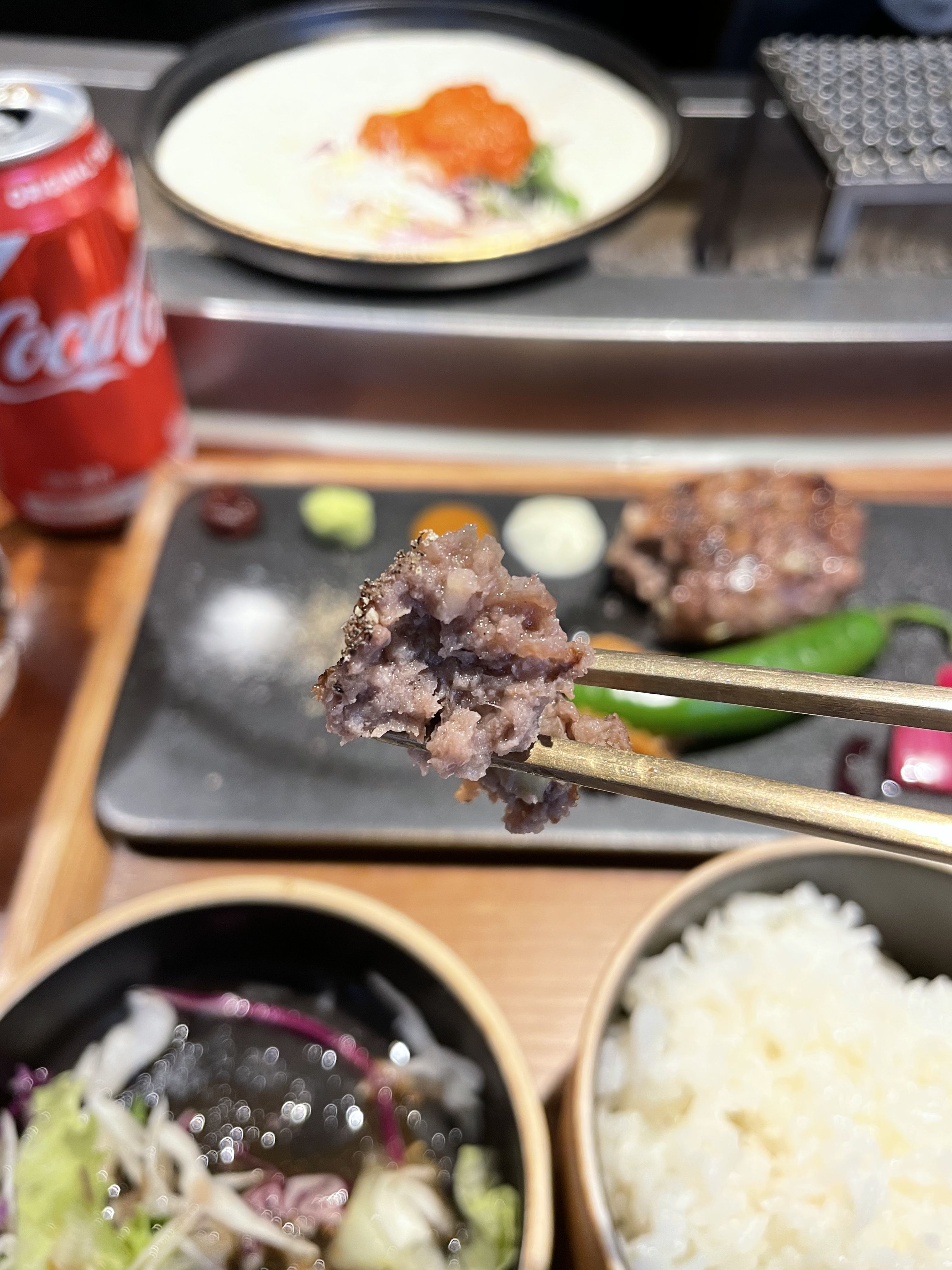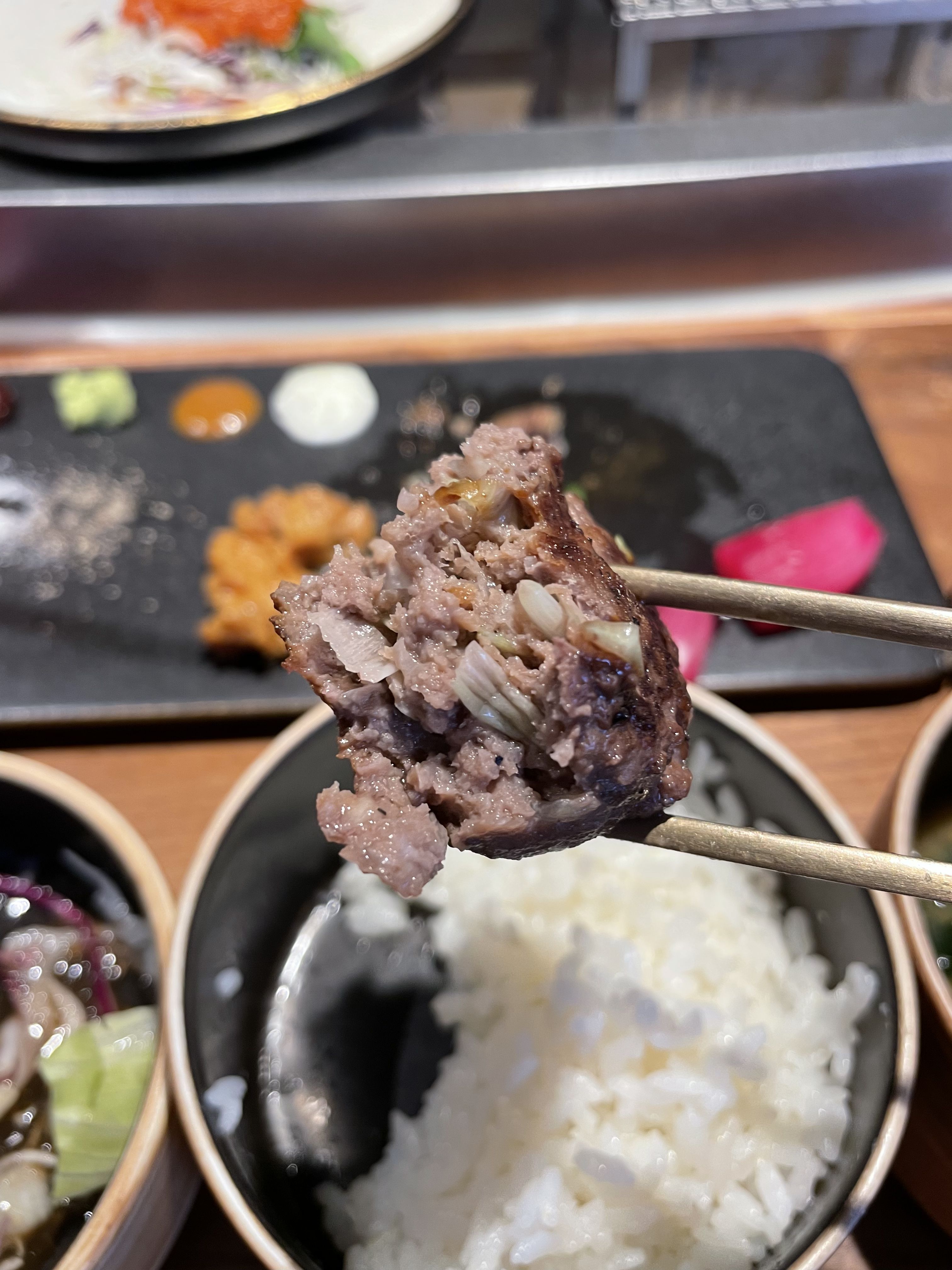 떡갈비 외에도 함바그와 스테이크 메뉴도 있어서 고기 선택에 있어서는 선택의 폭이 다양한 편인 것 같습니다. 홍대에 놀러 가는 분들이나 근처에 사시는 분들은 꼭 한번 방문해서 맛보는 걸 추천해드립니다!