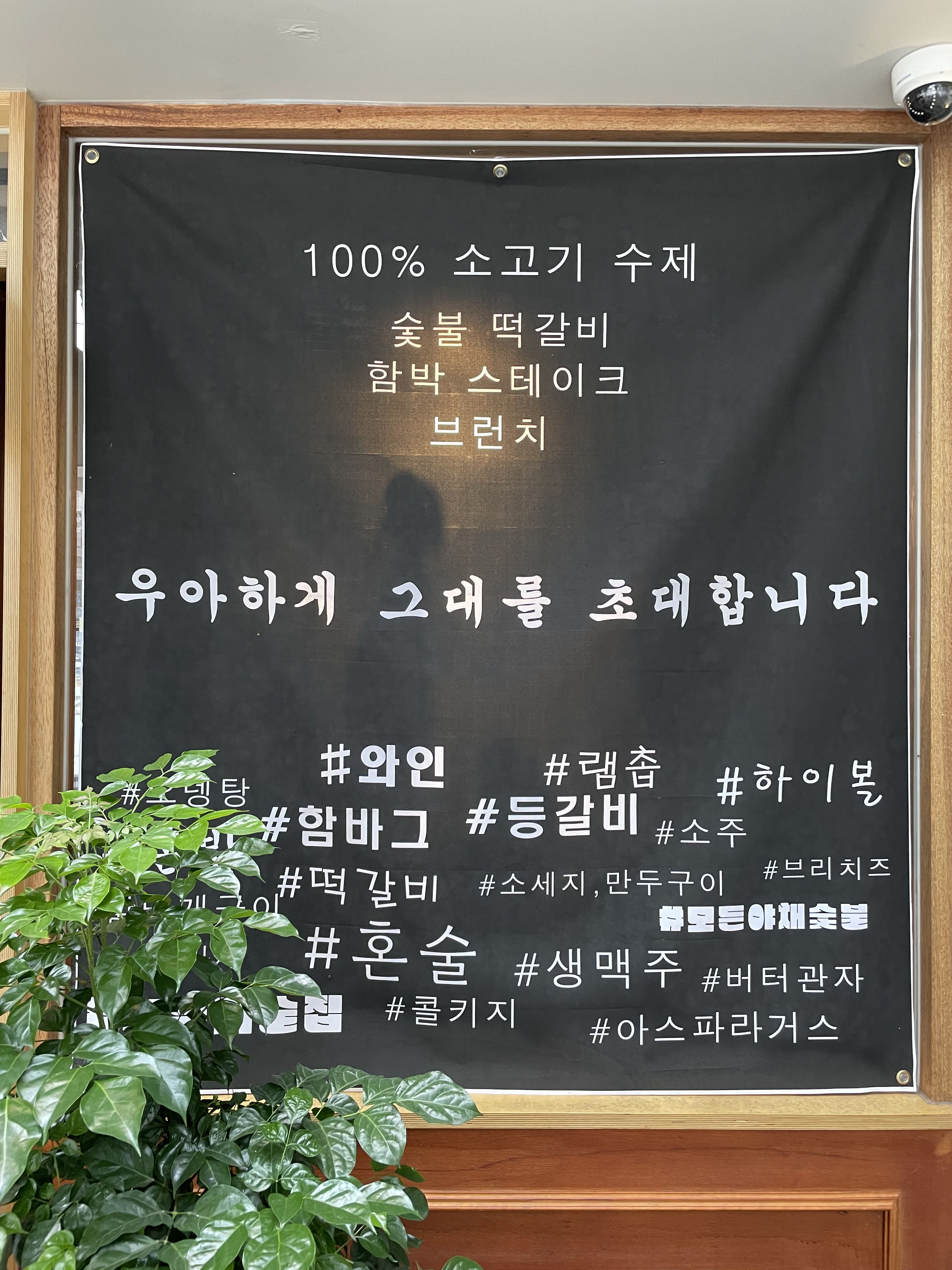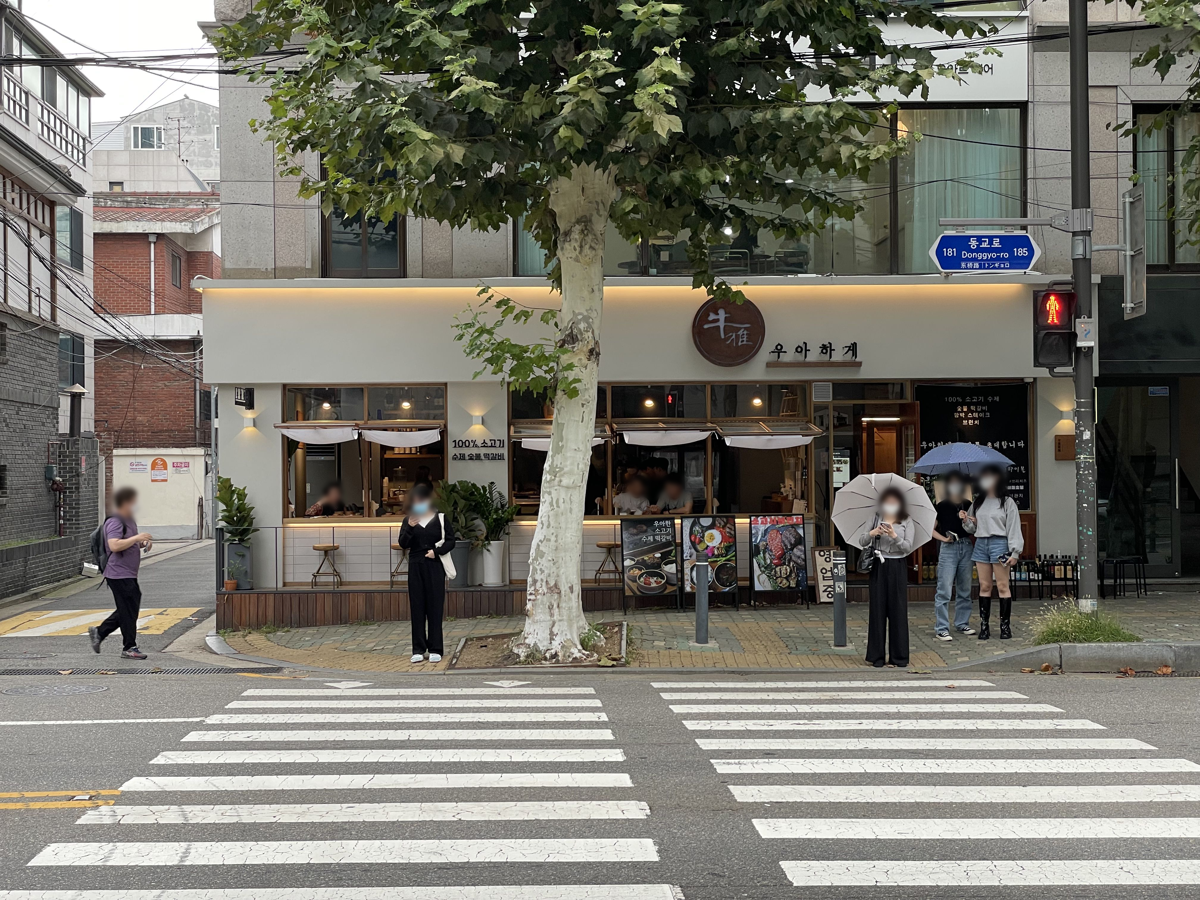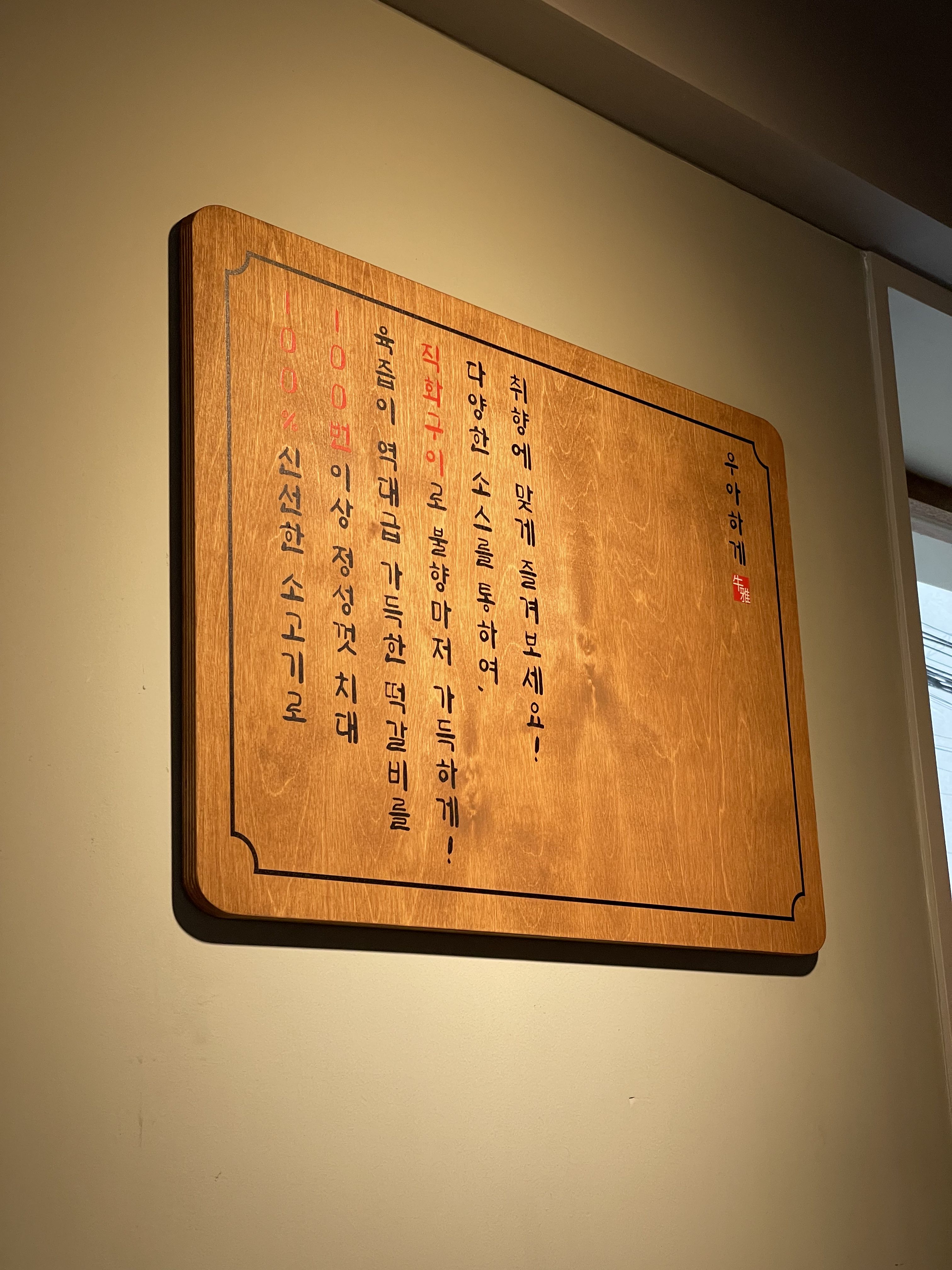 우아하게는 처음에 체인점인 줄 알았는데 유일하게 홍대에만 있는 식당이에요. 牛소(우) 雅맑은(아) 霞노을(하) 憩쉴(게)라는 뜻으로 든든한 식사와 함께 쉬어갈 수 있는 공간을 만들기 위해 노력하고 있다고 해요.