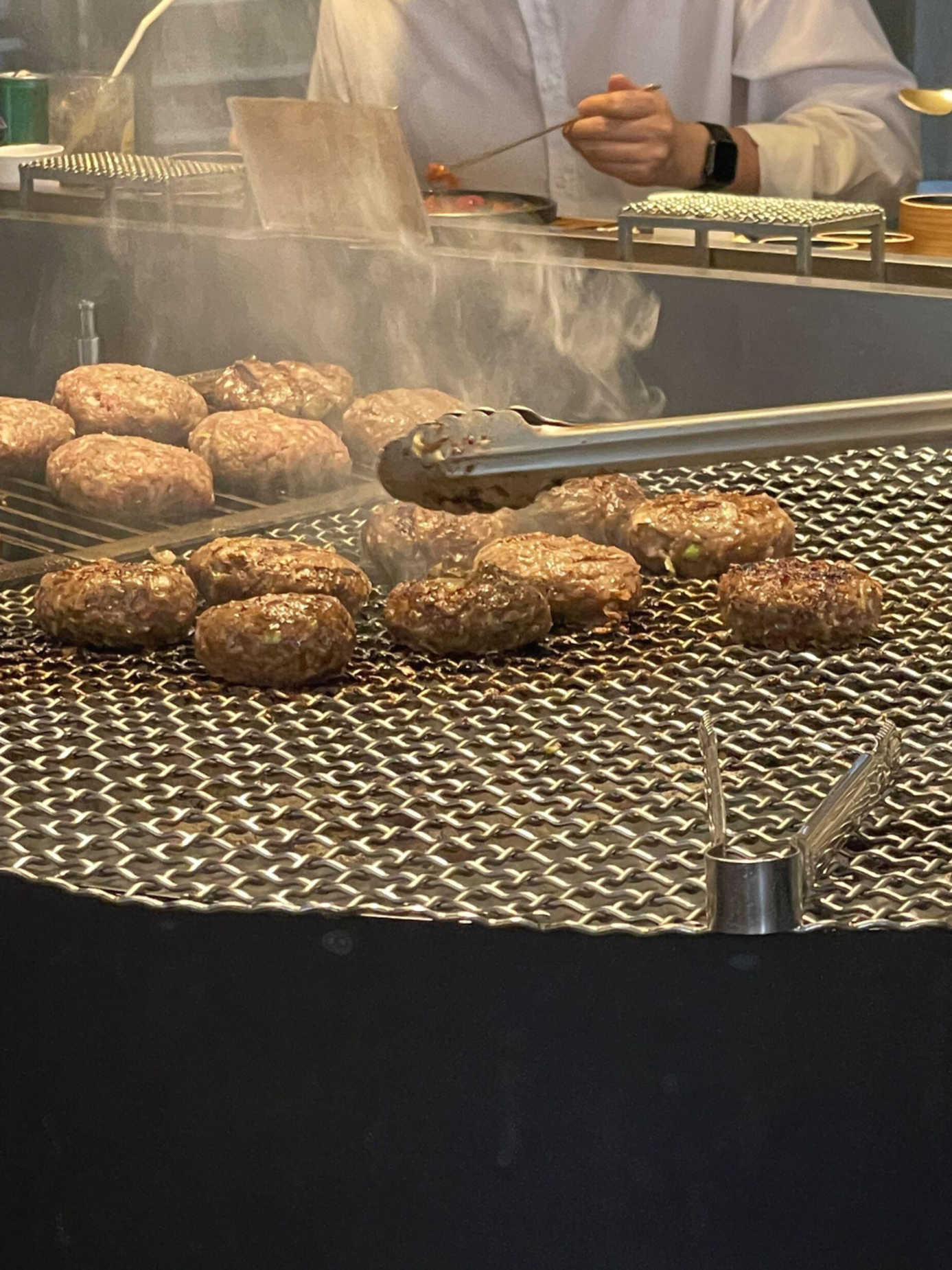 주문한 메뉴가 나오길 기다리는 동안 자리에 앉아서 떡갈비 굽는 장면을 잠시 구경했어요. 그릴에 살짝 그을린 떡갈비가 너무 먹음직스러워 보이더라고요.