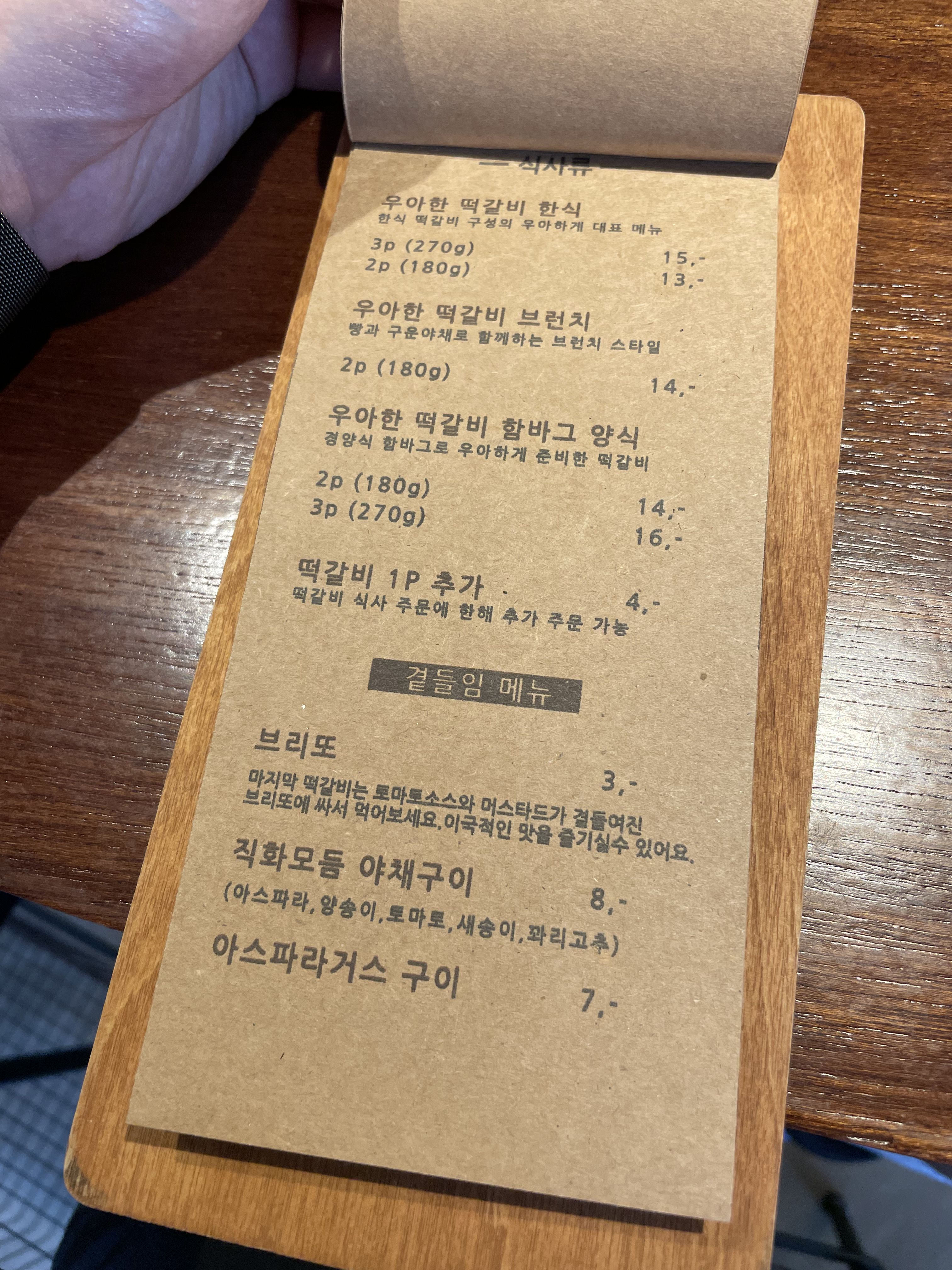 자리에도 종이로 된 메뉴판이 있으니 더 자세히 확인할 수 있습니다.