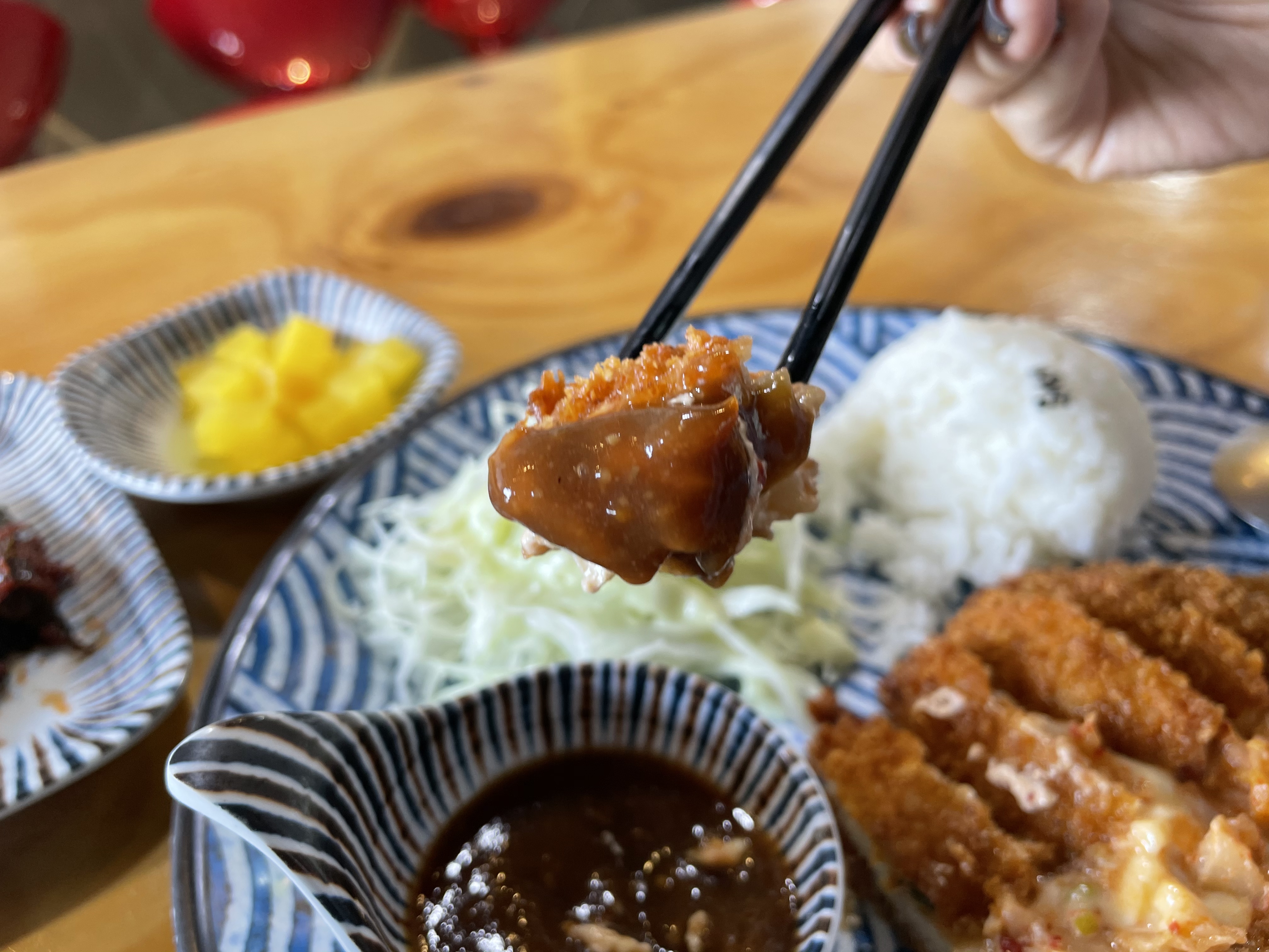 저는 원래 느끼한 걸 별로 안 좋아해서 치즈 돈까스도 잘 안 먹는 편인데 이 김치치즈 돈까스는 얇게 썰어진 김치가 들어가 있어서 그런지 그렇게 막 느끼하지 않고 편하게 먹을 수 있더라고요.
