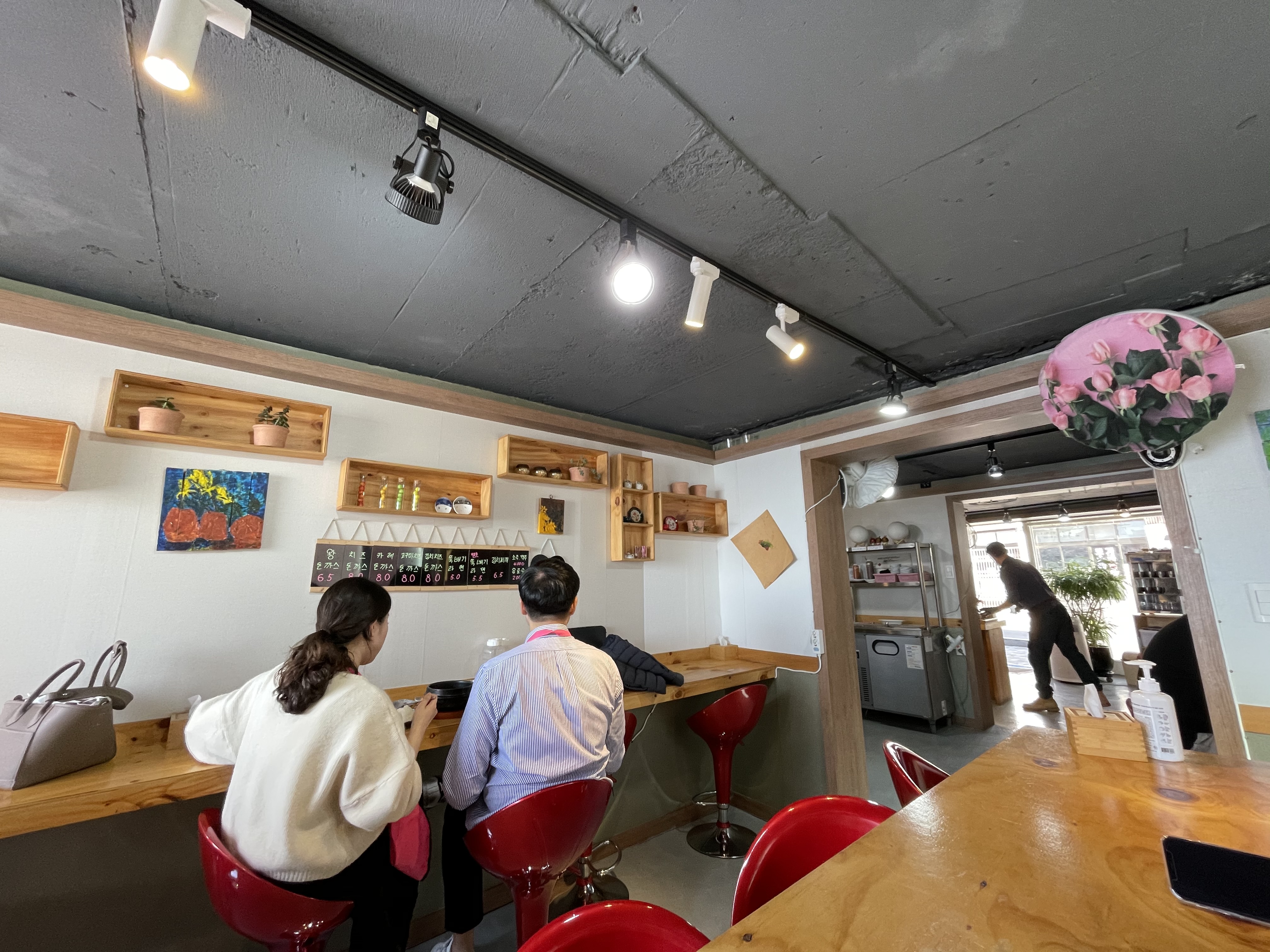 손님이 많지는 않았지만 바다가 보이는 창가 자리는 이미 다른 손님이 앉아 있어서 저희는 바다가 왼편으로 보이는 자리에 앉았어요.