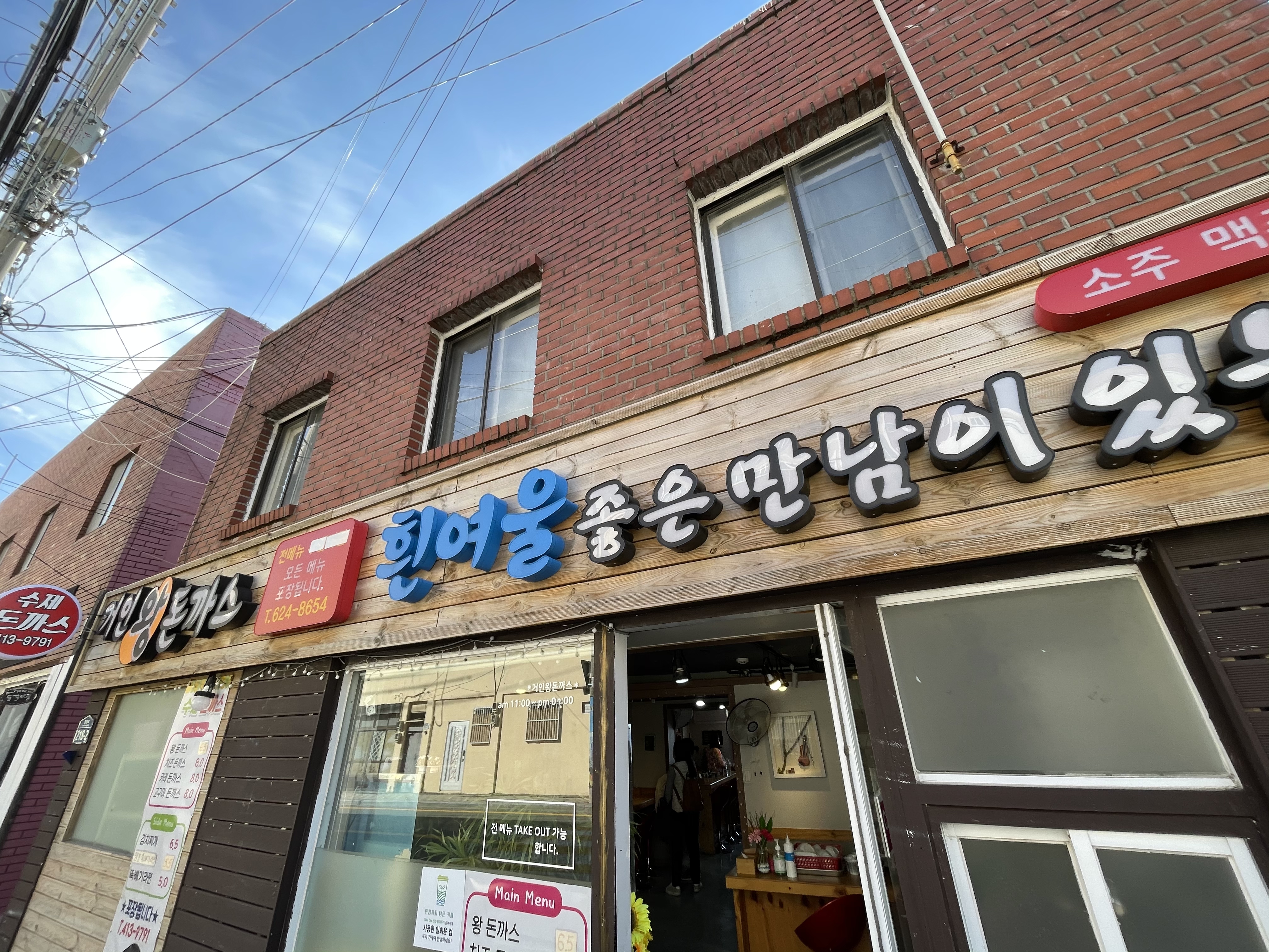 여자친구와 저는 원래 영도에서 유명한 스지전골 맛집인 왔다식당에 가려고 했는데 주말에는 영업을 하지 않아서 급하게 찾아본 맛집이 바로 흰여울문화마을의 거인왕돈까스였어요.