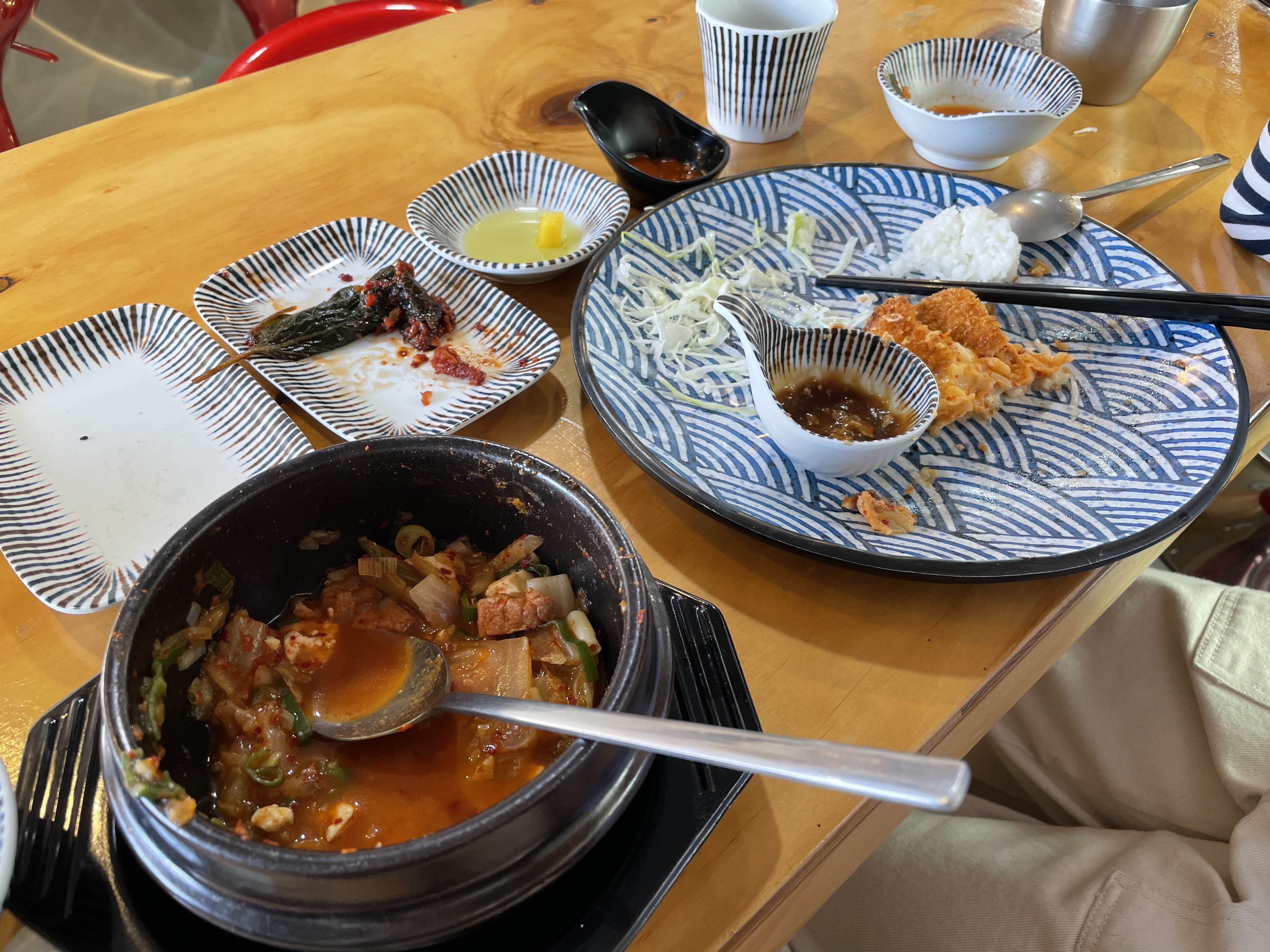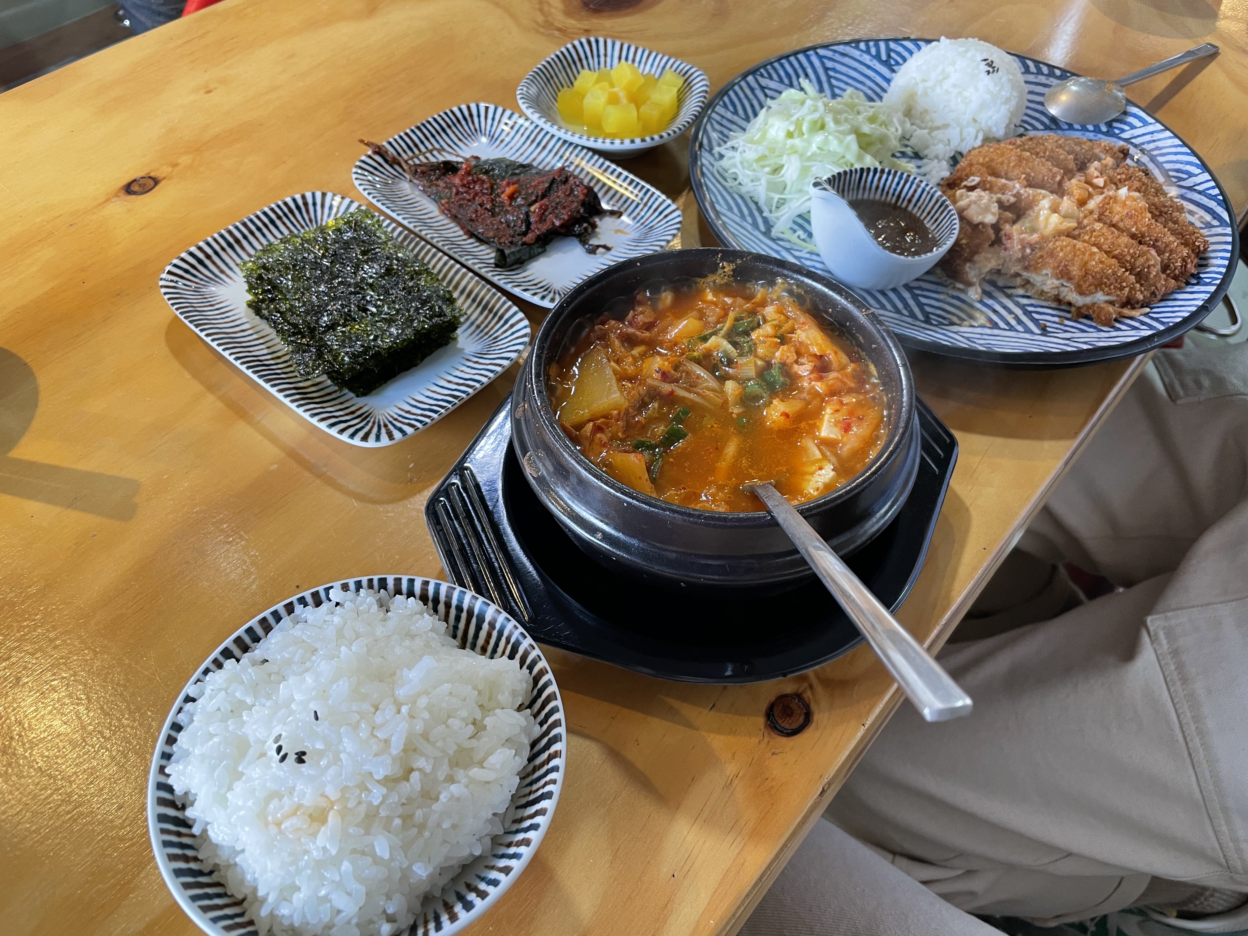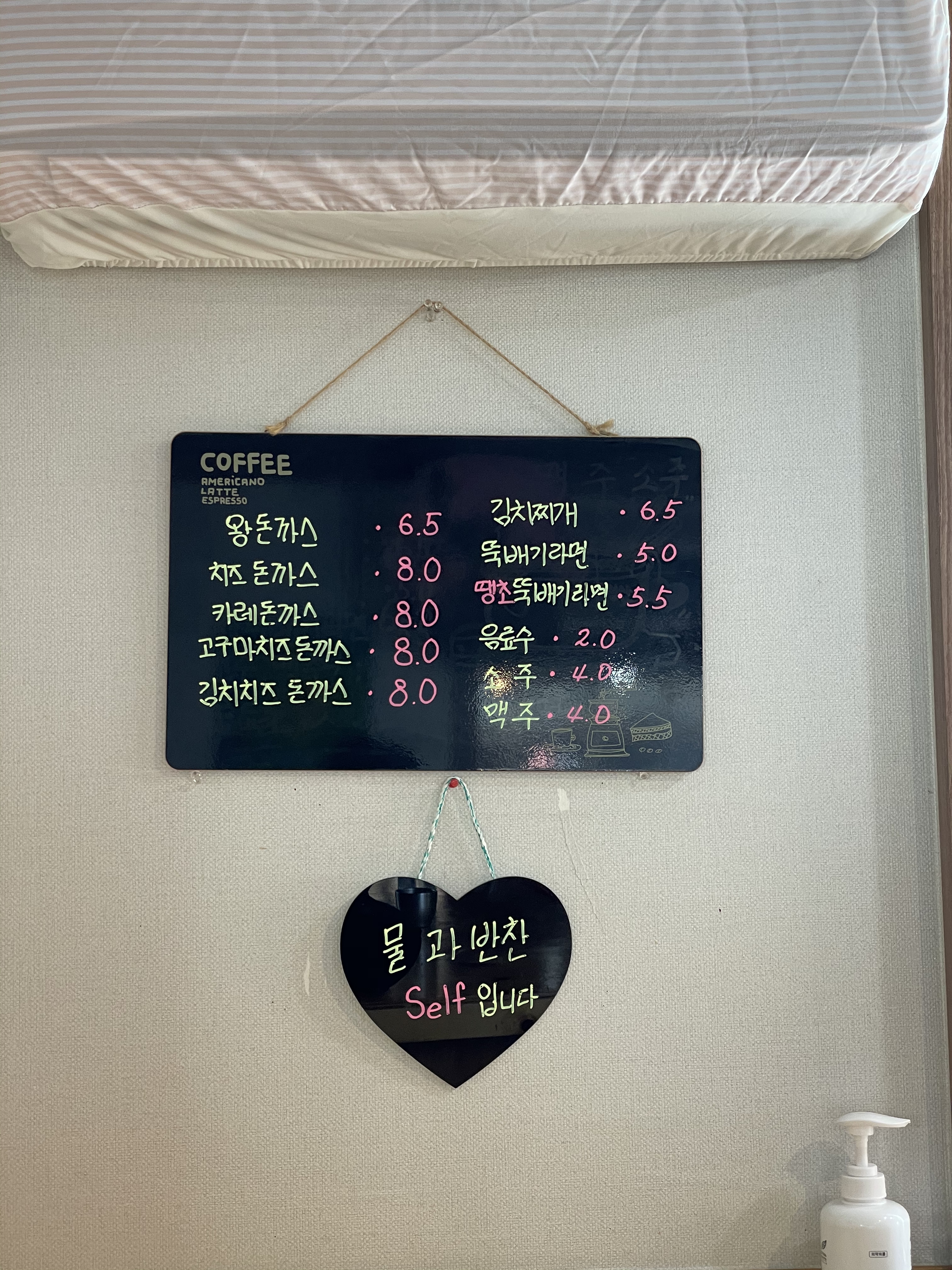 저는 전날 술을 좀 많이 마셔서 김치찌개, 여자친구는 김치치즈 돈까스를 주문하기로 했어요.