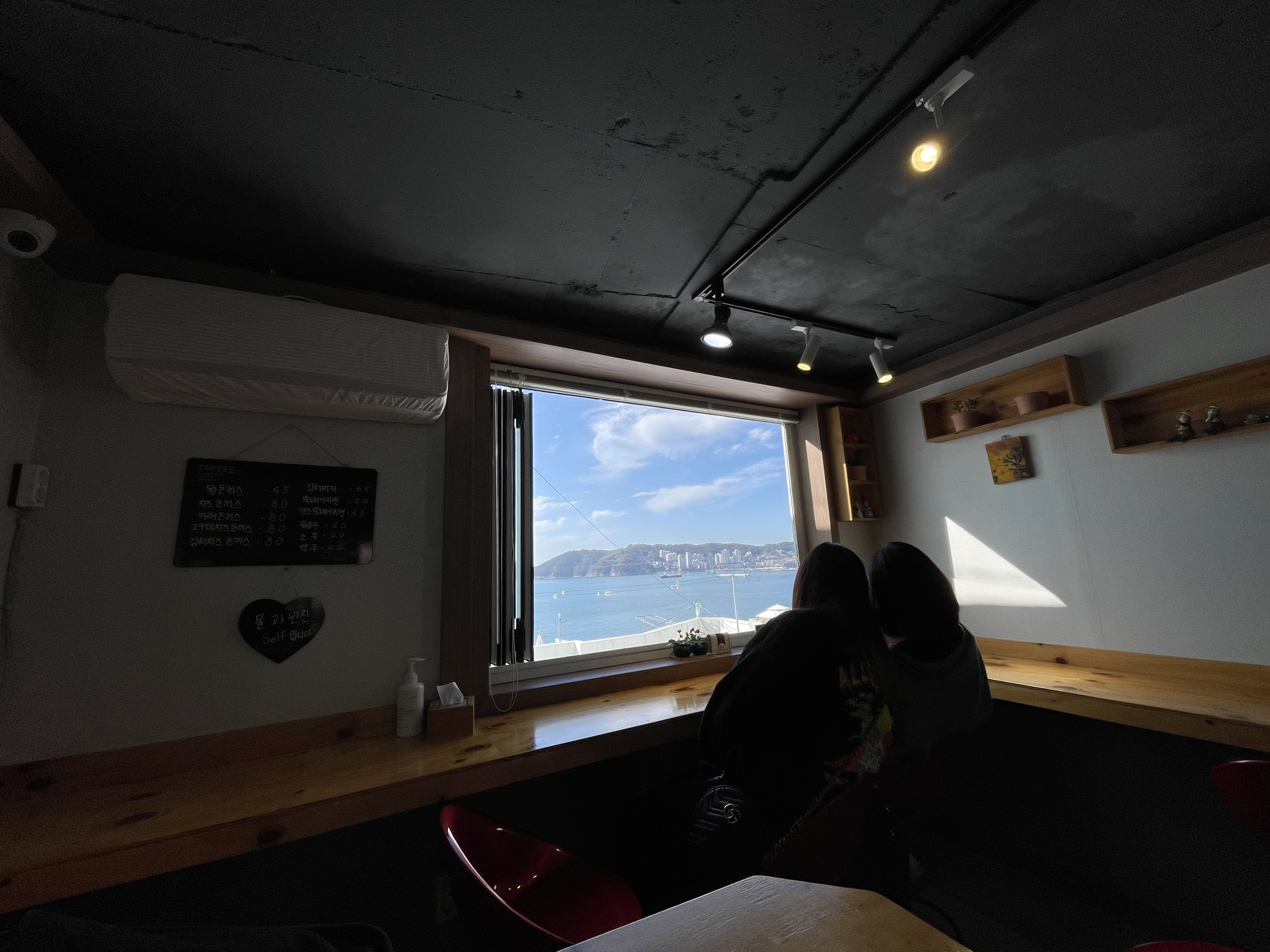 창밖으로 보이는 영도 바다와 하늘을 보니 마음이 정말 평온해졌어요.