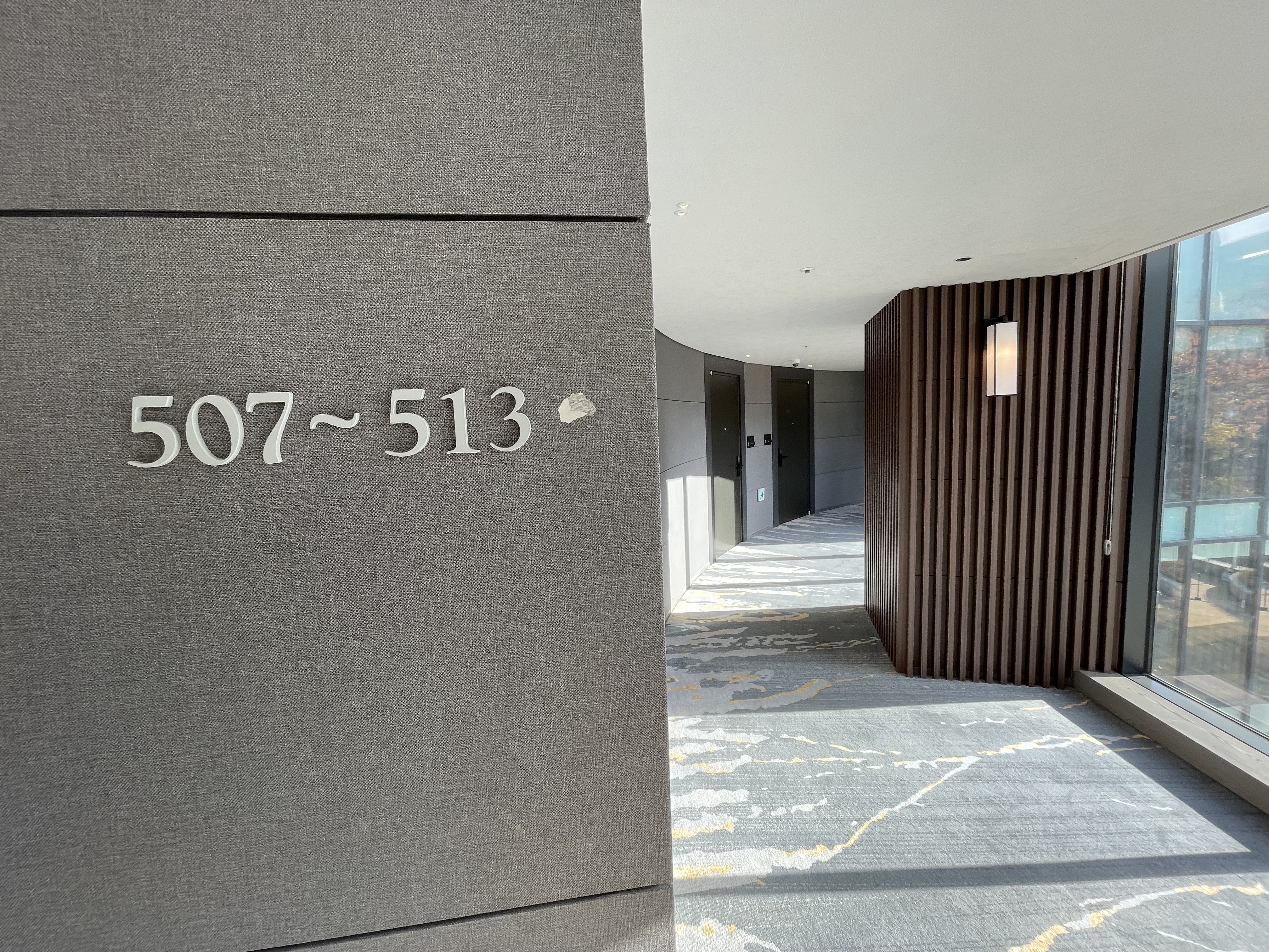 간단히 체크인을 한 후 114동 510호 방을 배정받고 올라왔는데요, 신상 호텔이라 그런지 내부가 상당히 깔끔했습니다. 다만 엘리베이터 속도가 너무 느려서 좀 답답한 느낌을 받았어요.