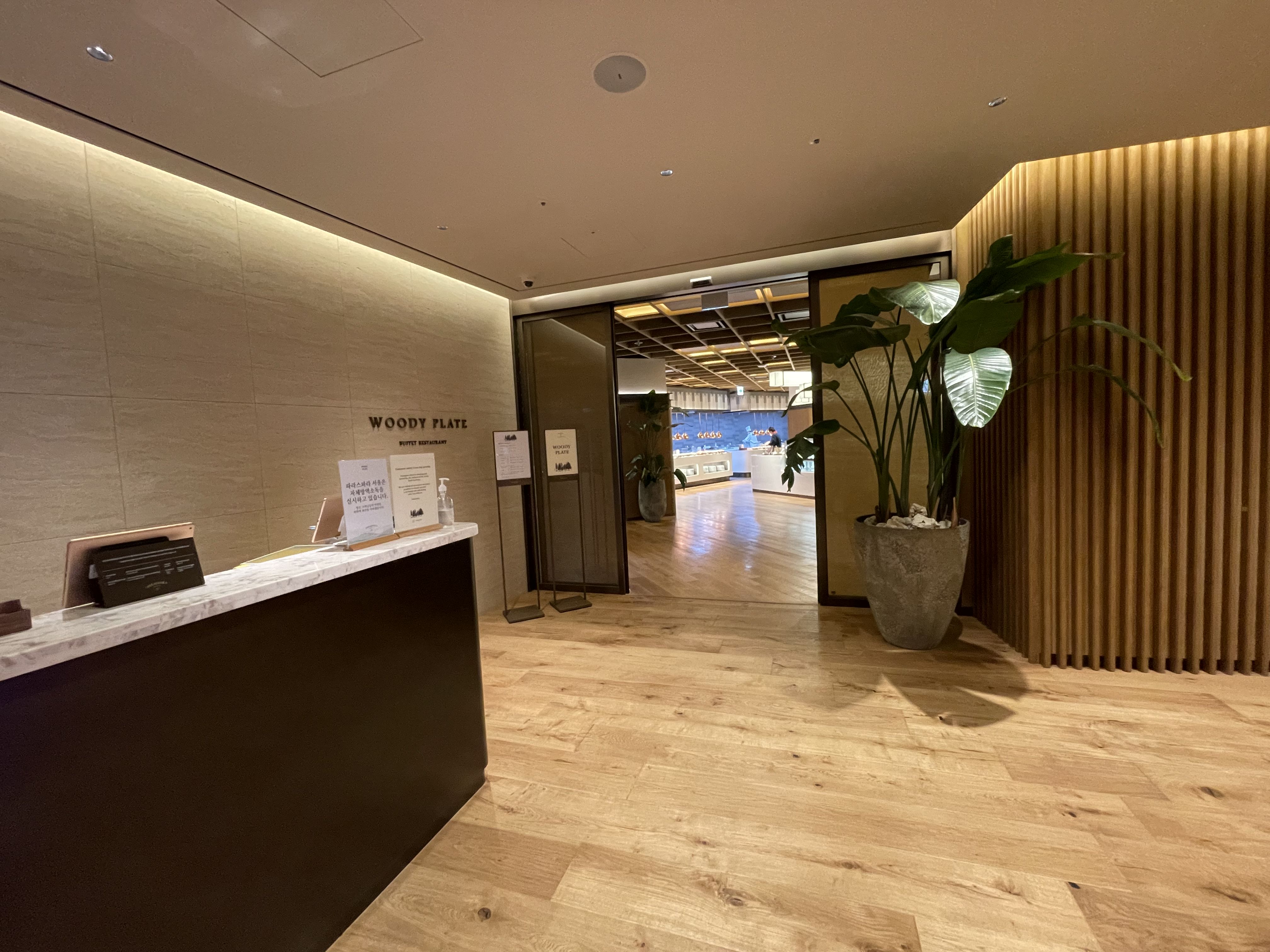 다음 날 오전 8시에 조식을 먹기 위해 114동 2층 우디 플레이트라는 뷔페에 갔는데요, 8시 이후로는 손님들이 몰릴 수 있어 그전에 가는 걸 추천받았는데 실제로 8시에 가자마자 사람들이 우르르 몰려오더라고요.