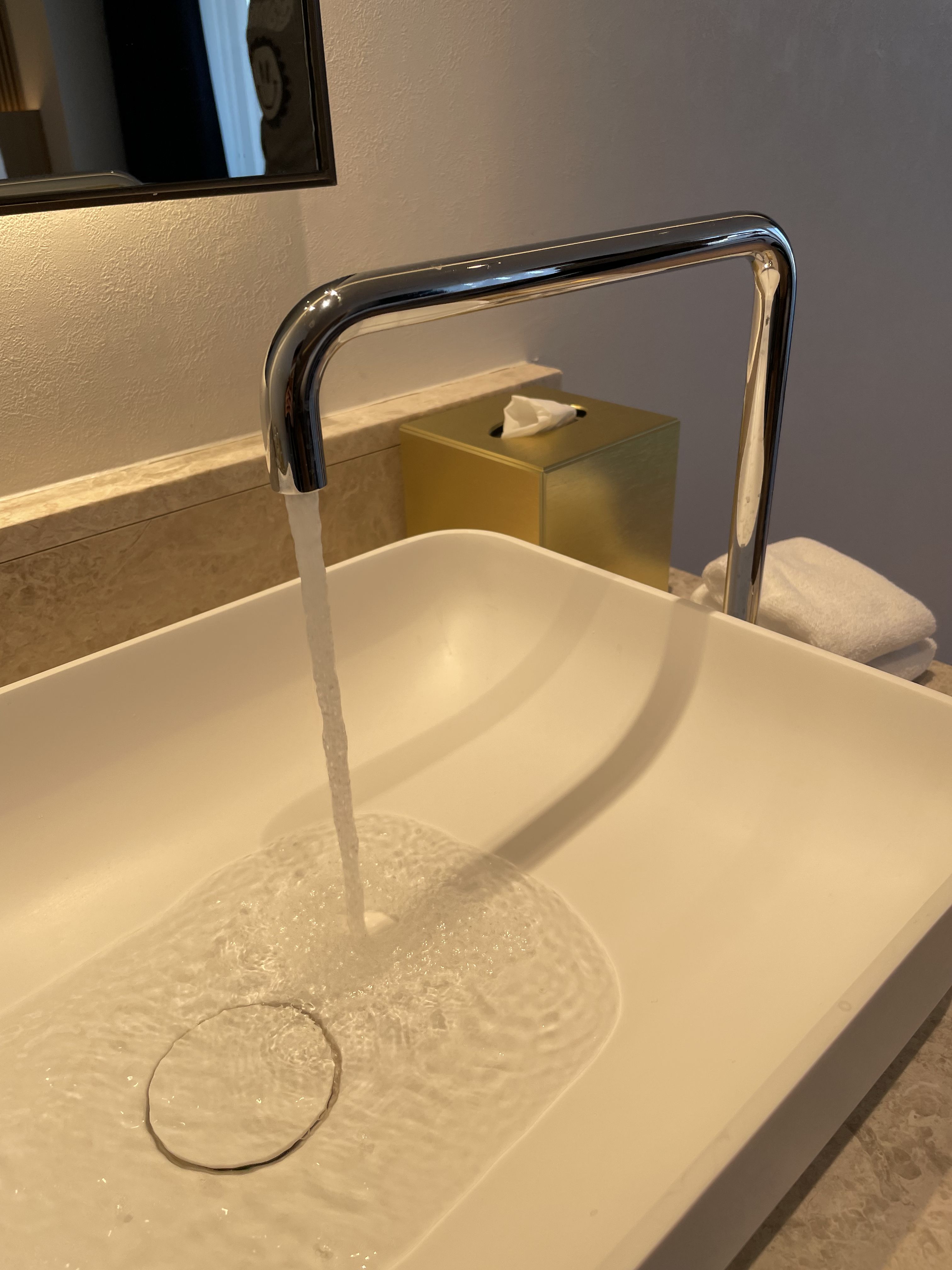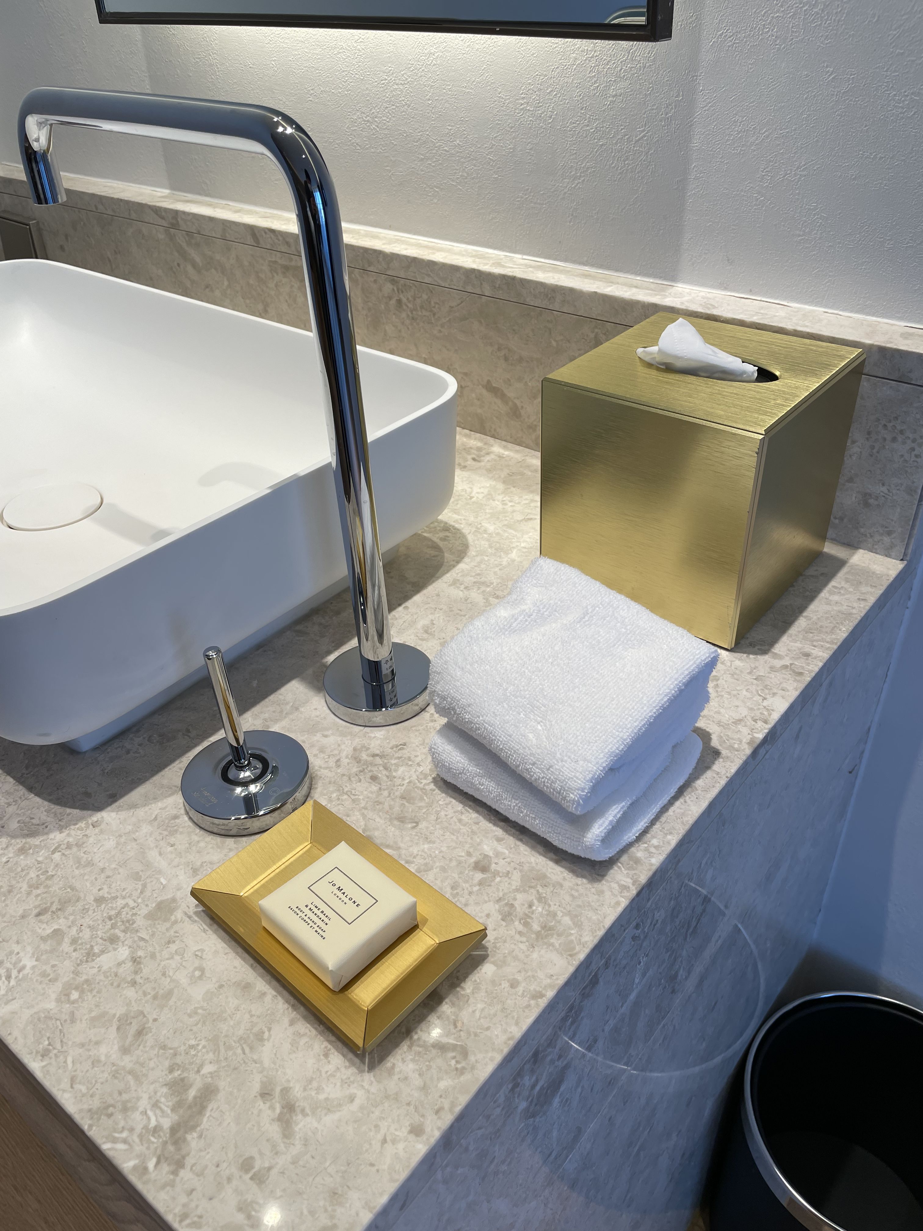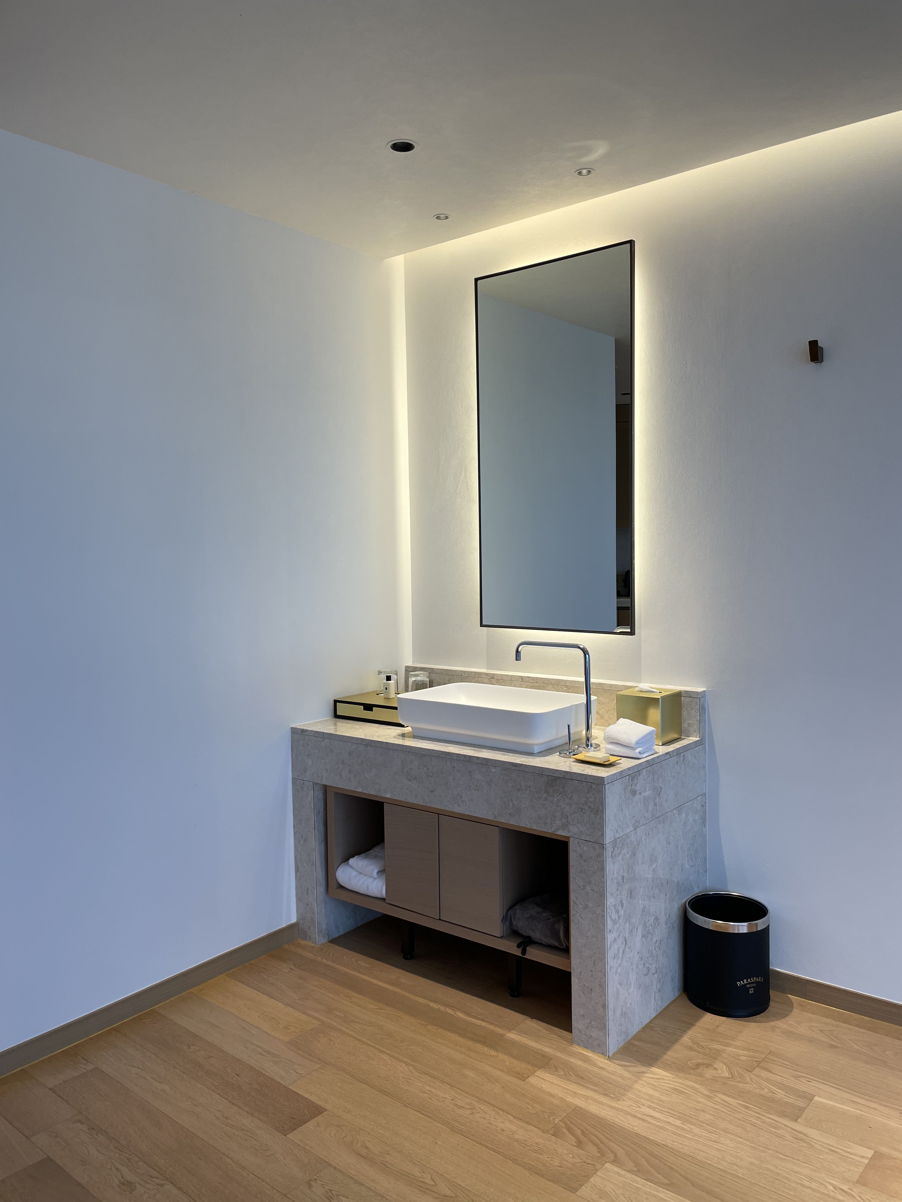 세면대는 건식 형태로 돼 있었는데요, 호텔의 건식 세면대를 선호하긴 하지만 화장실과의 거리가 떨어져 있어서 좀 뜬금없는 느낌을 받았어요.