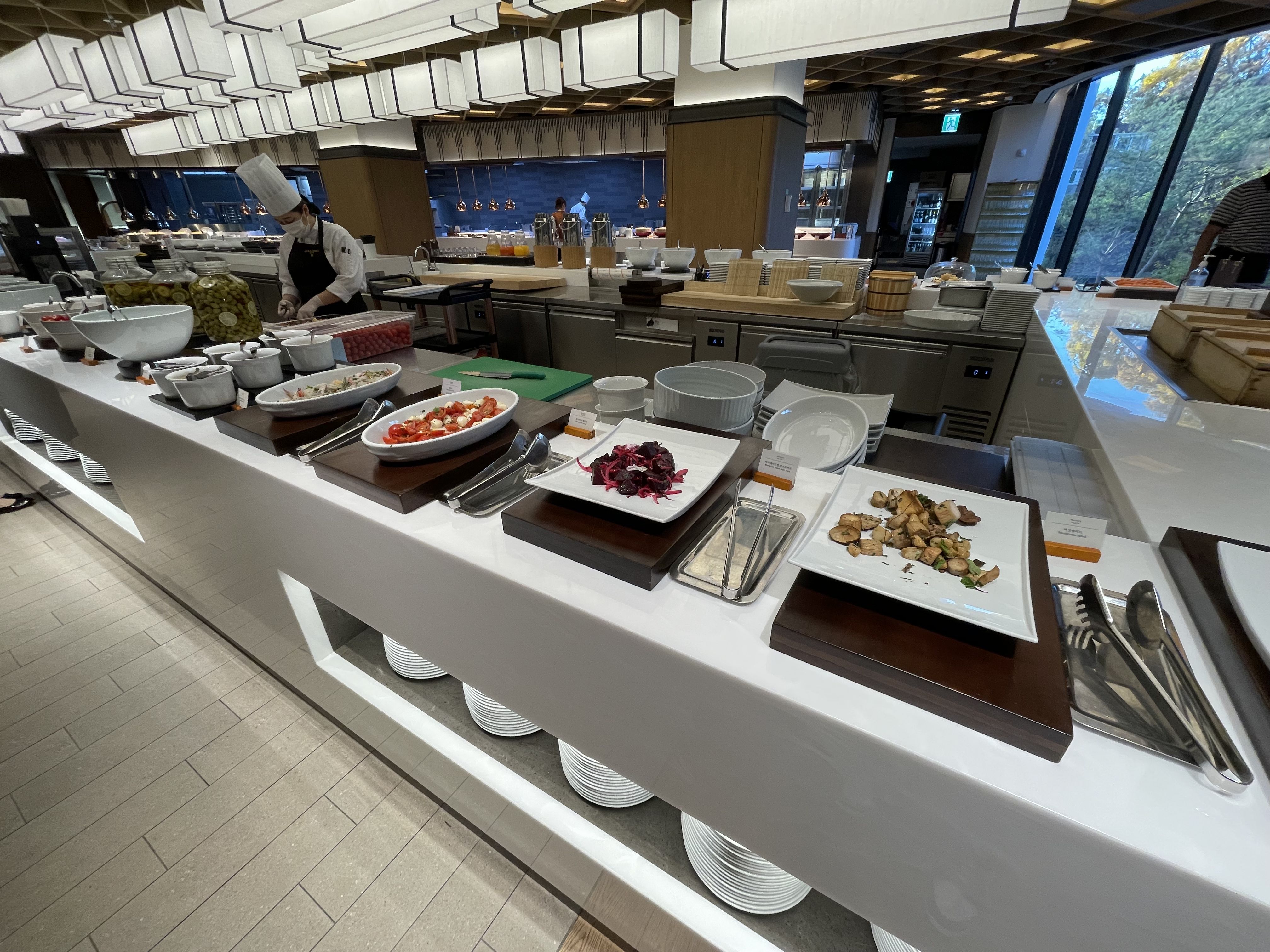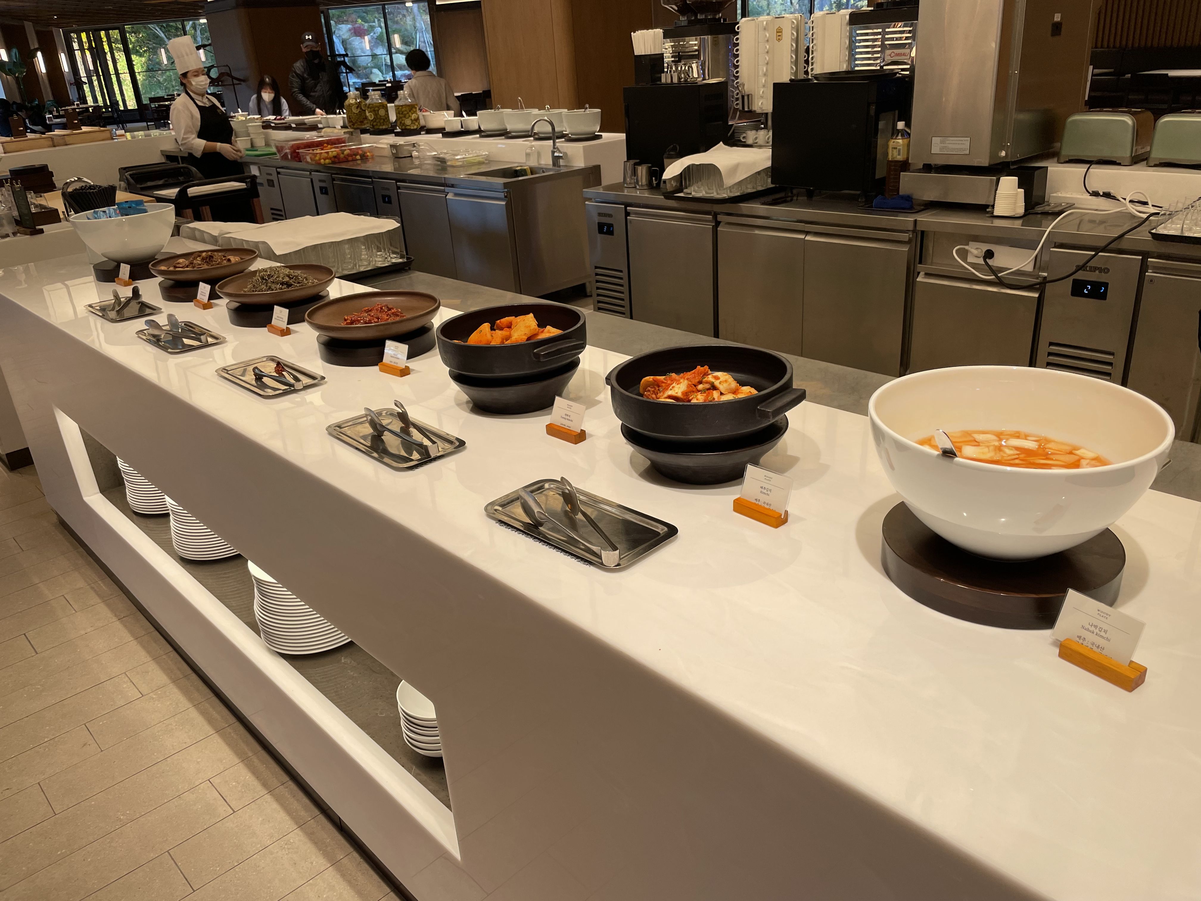 뷔페 공간은 굉장히 넓었어요. 음식도 굉장히 다양했는데요, 한식 종류부터 샐러드와 과일, 빵 종류까지 아침 메뉴가 준비되어 있었어요.