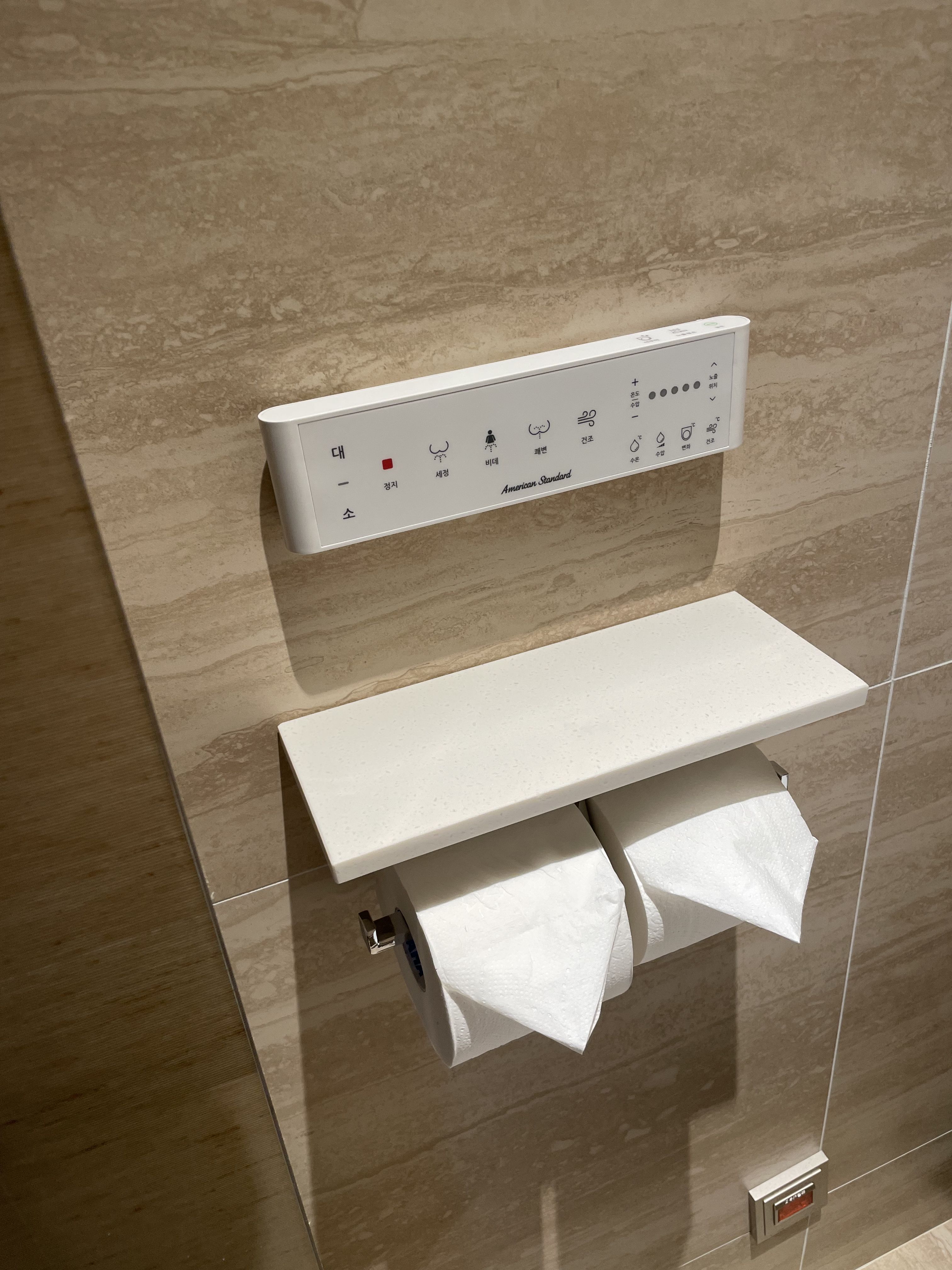 화장실은 샤워실 바로 왼편에 위치해 있었는데요, 전자동 비데 변기가 설치돼 있었어요.