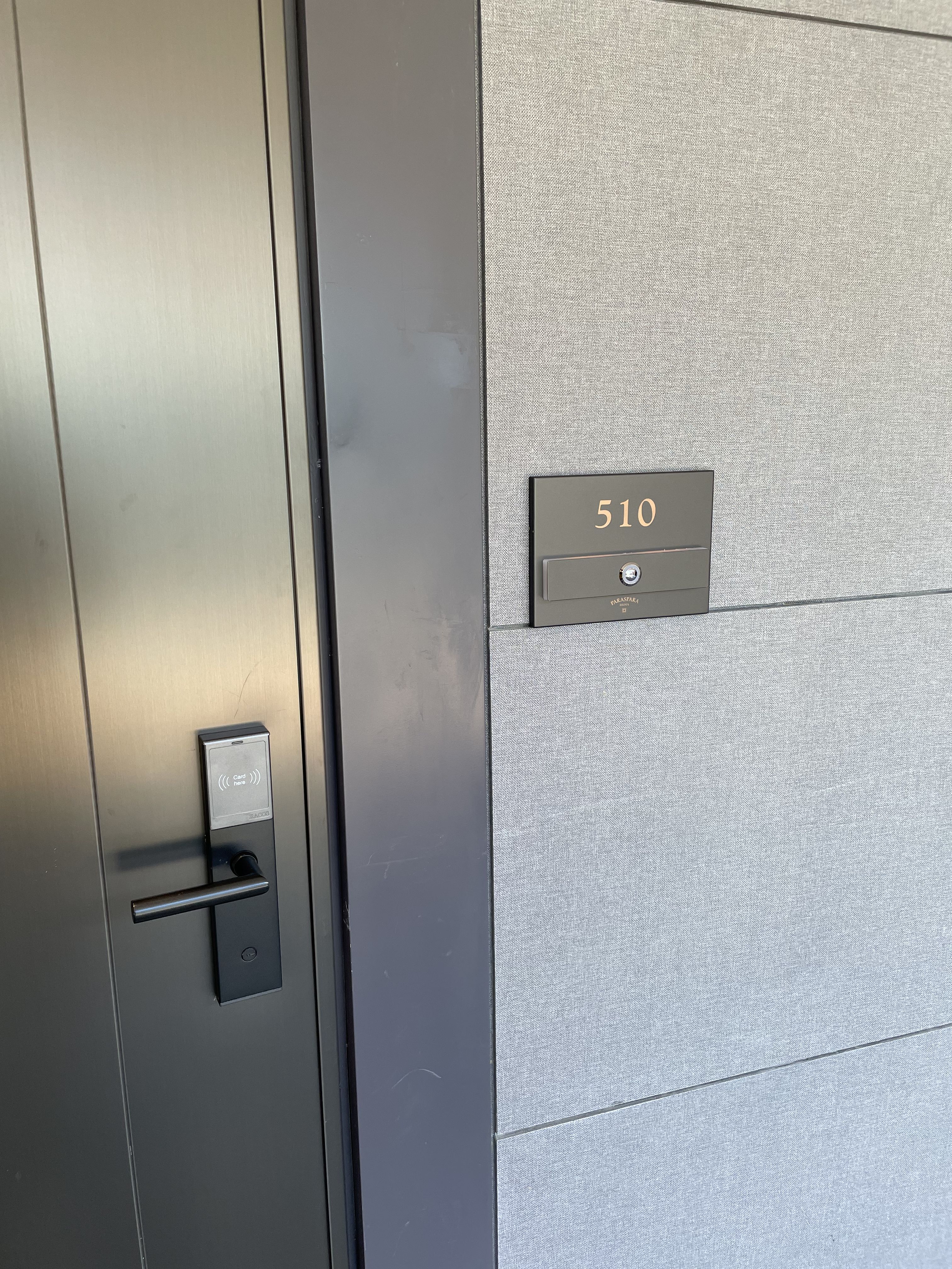 간단히 체크인을 한 후 114동 510호 방을 배정받고 올라왔는데요, 신상 호텔이라 그런지 내부가 상당히 깔끔했습니다. 다만 엘리베이터 속도가 너무 느려서 좀 답답한 느낌을 받았어요.