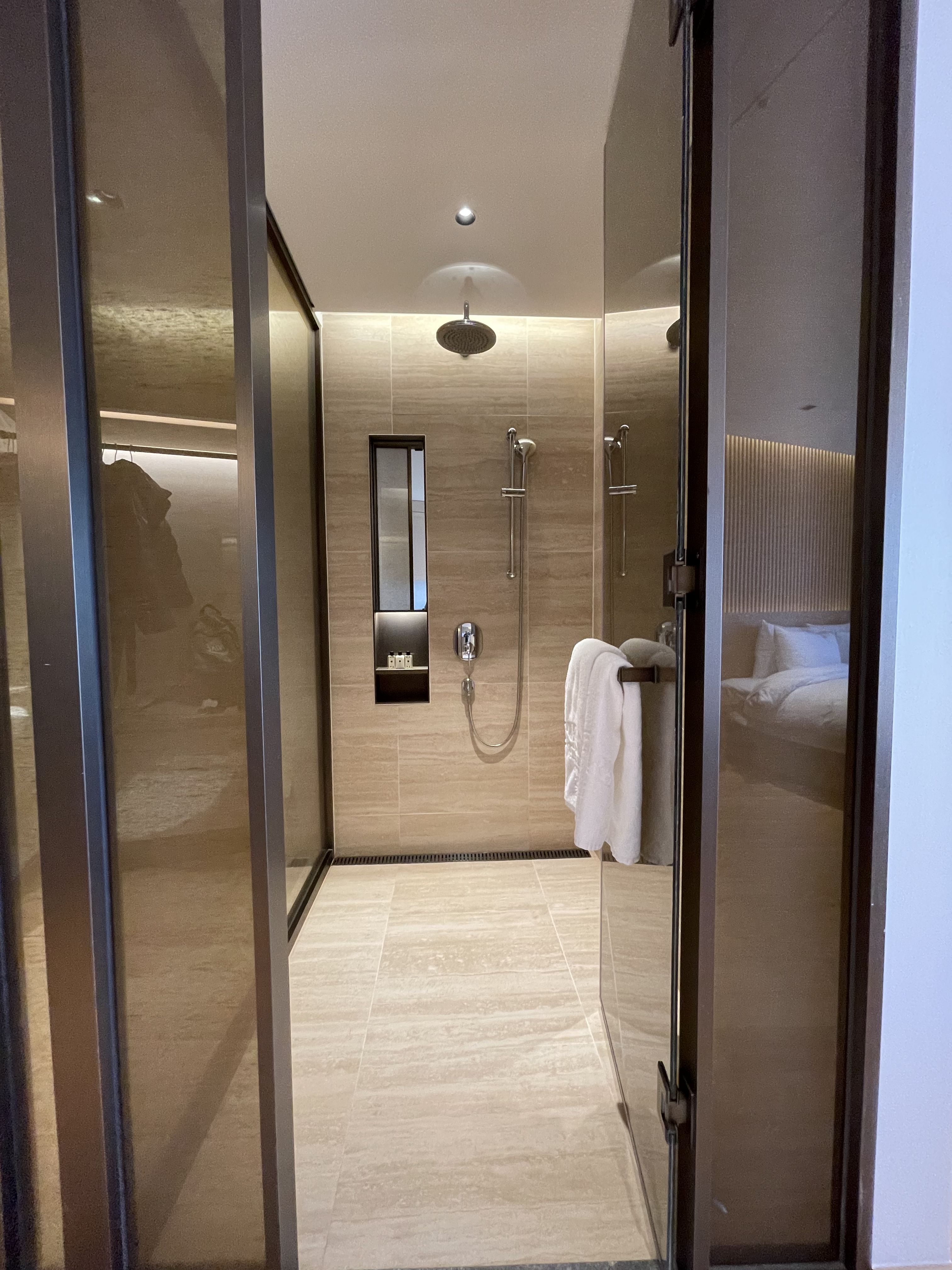 샤워실과 화장실 모두 반투명 유리로 되어 있어서 프라이버시를 지키기 어려운 점이 좀 아쉬웠어요. 화장실의 경우 내부에 블라인드라도 설치돼 있으면 어떨까라는 생각이 들더라고요.