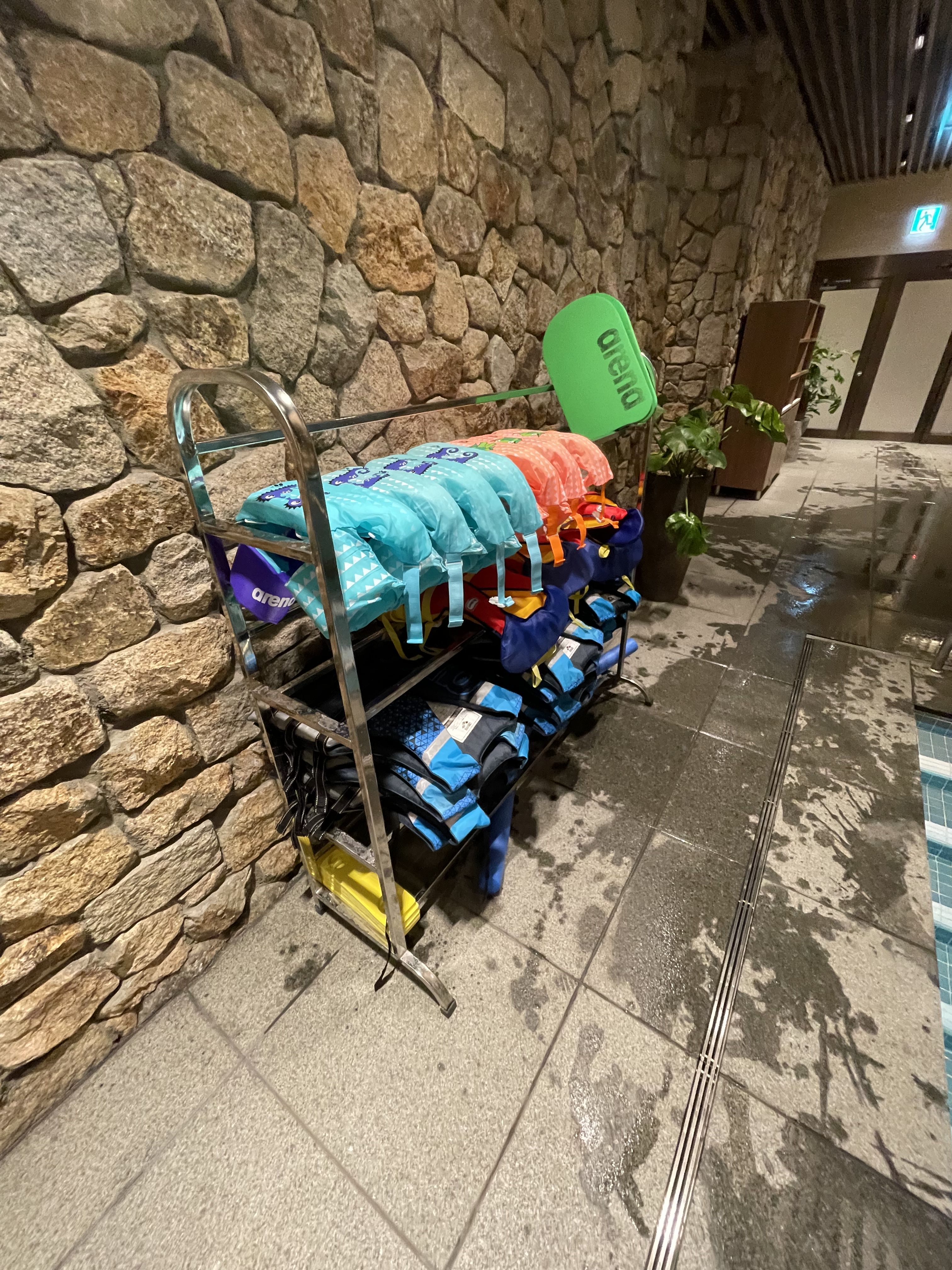 해가 뉘엿뉘엿 지더니 좀 추워져서 1층 실내 수영장으로 이동했어요. 평일이라 그런지 가족 단위의 손님들이 대부분이더라고요.