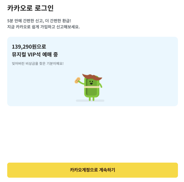 복잡한 공인인증서 없이 카카오톡으로 간편 인증이 가능하고, 내가 몰랐던 환급금액을 즉시 확인해서 신청까지 할 수 있습니다.