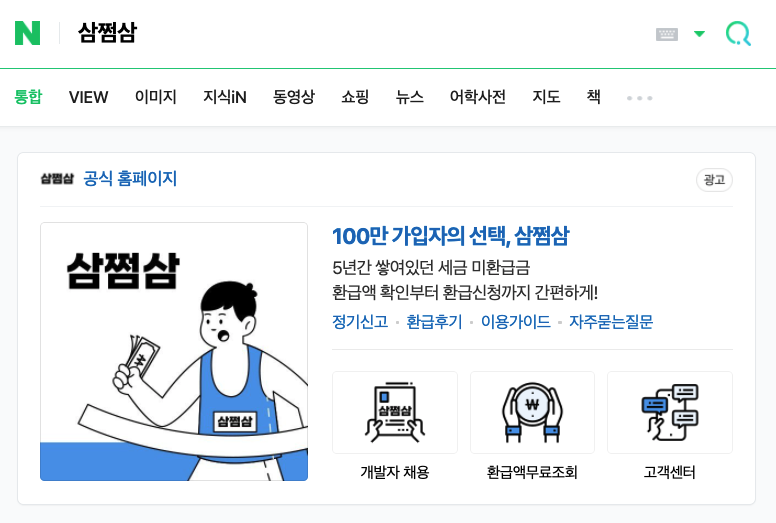 먼저 포털 사이트에서 '삼쩜삼'을 검색해주세요.