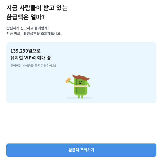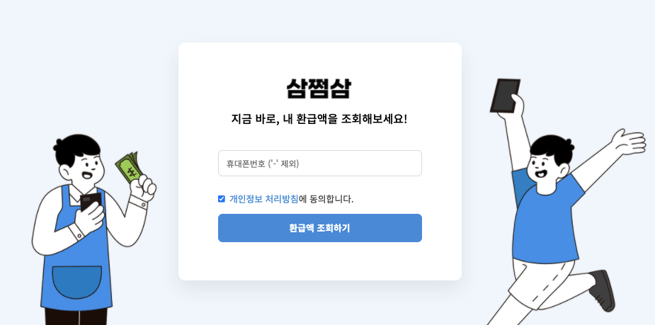 자신의 휴대폰 번호를 입력하고 '환급액 조회하기' 버튼을 눌러주세요.