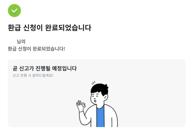 저는 수수료 5,000원 결제 후 환급 신청을 완료했습니다.